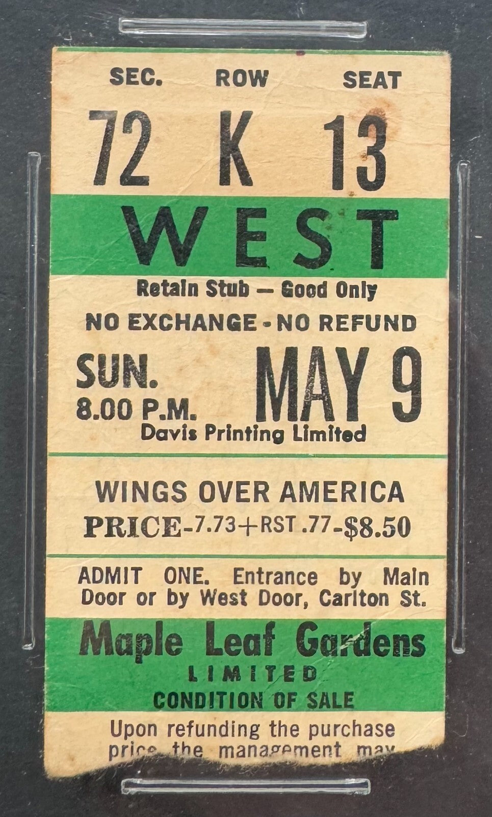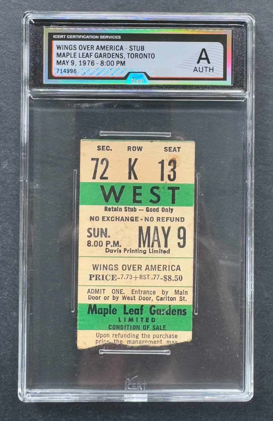- 1976 Wings Over America Ticket Stub iCert Graded