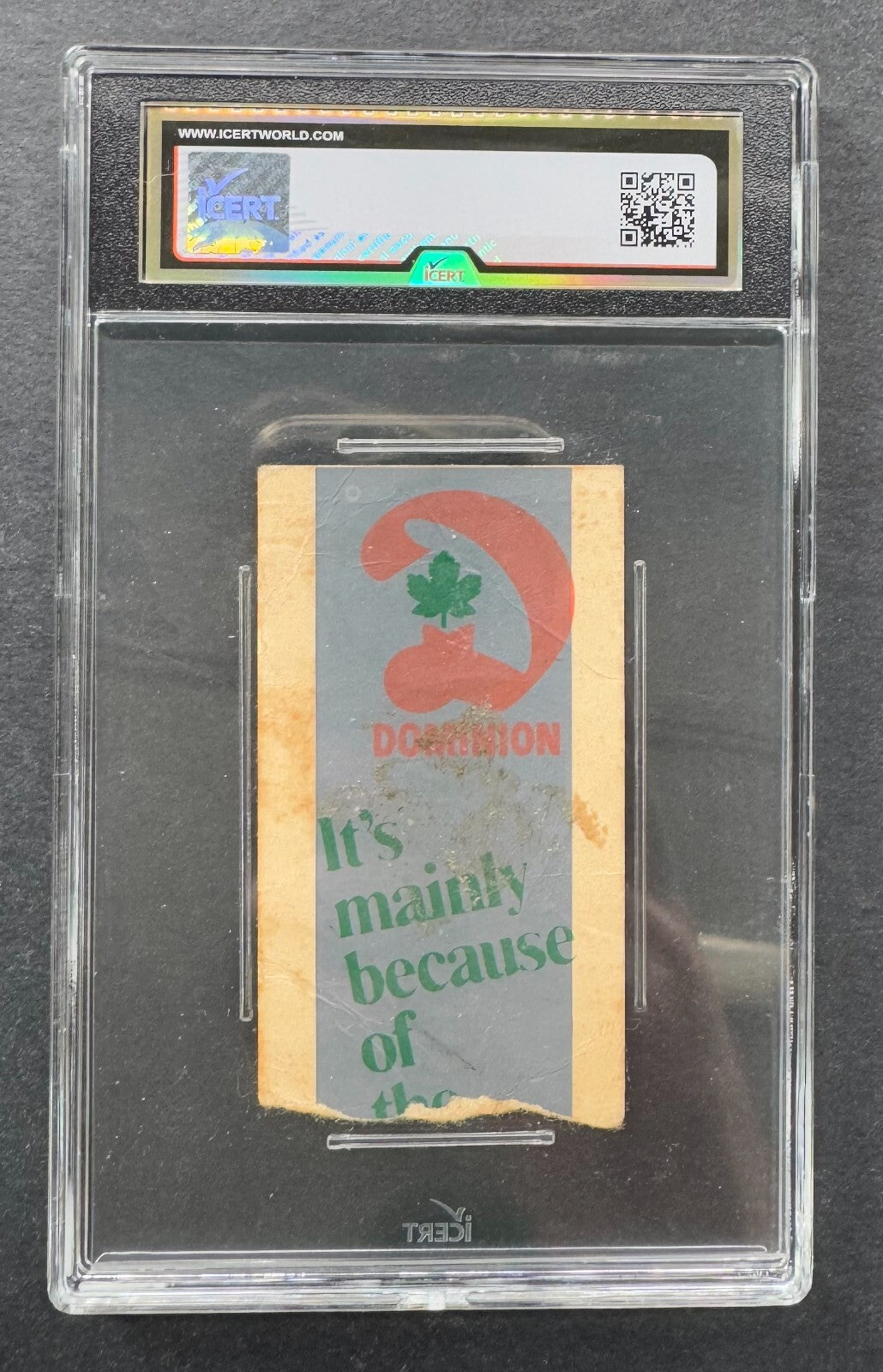 - Slabbed and authenticated by iCert. Ticket is otherwise in very good condition with uneven entry tear, some minor discoloration and residue