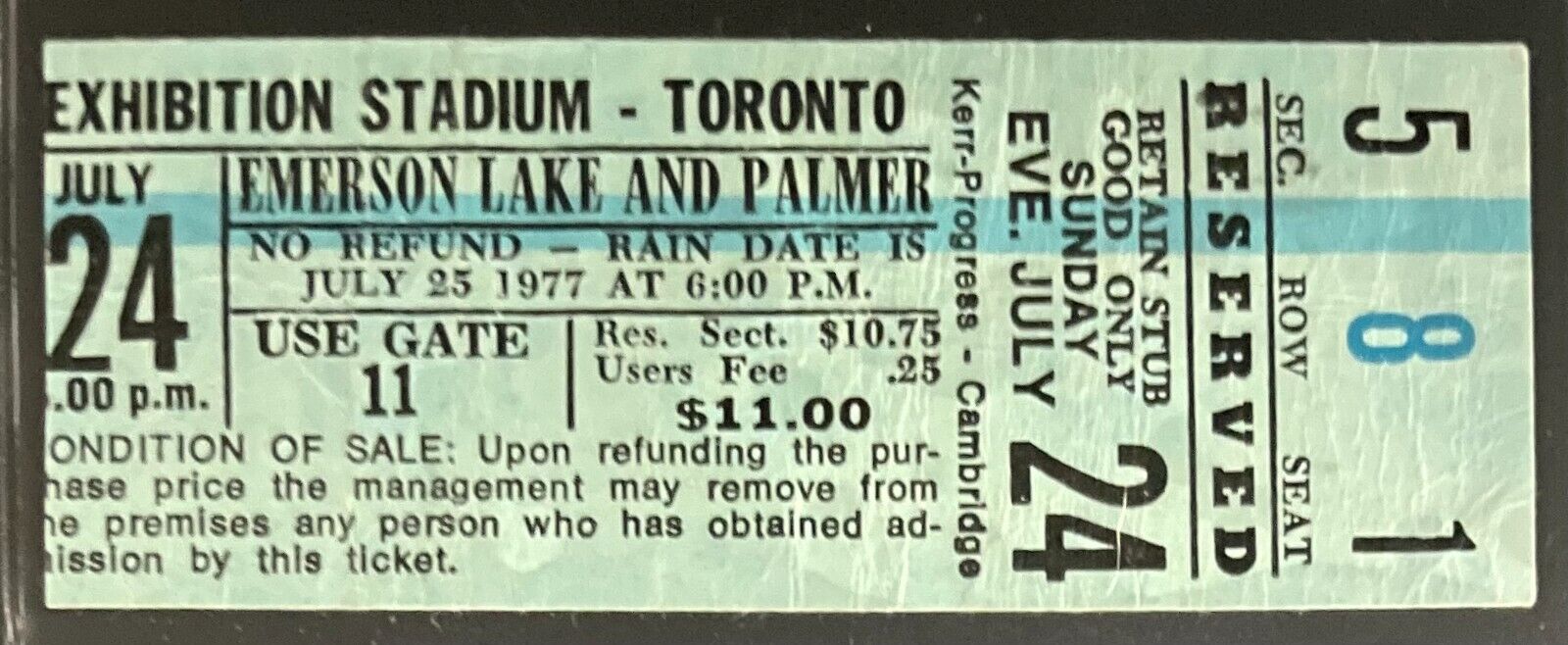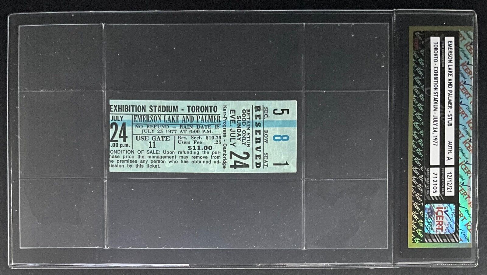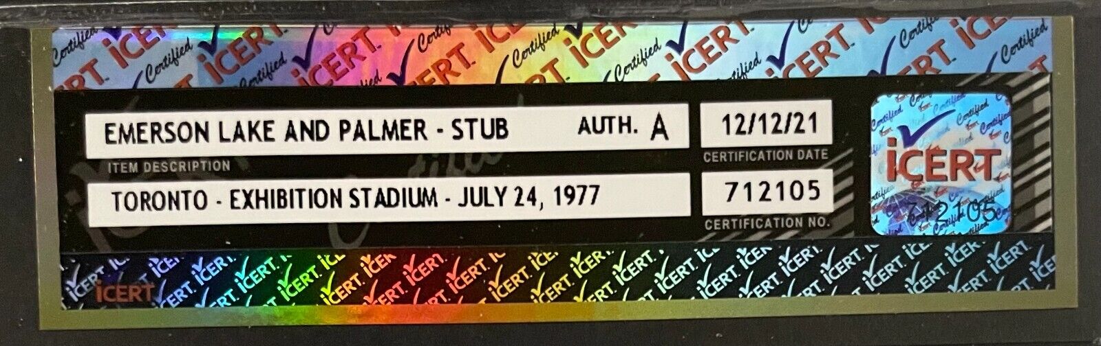 - 1977 Emerson Lake And Palmer concert ticket stub, authenticated by iCert