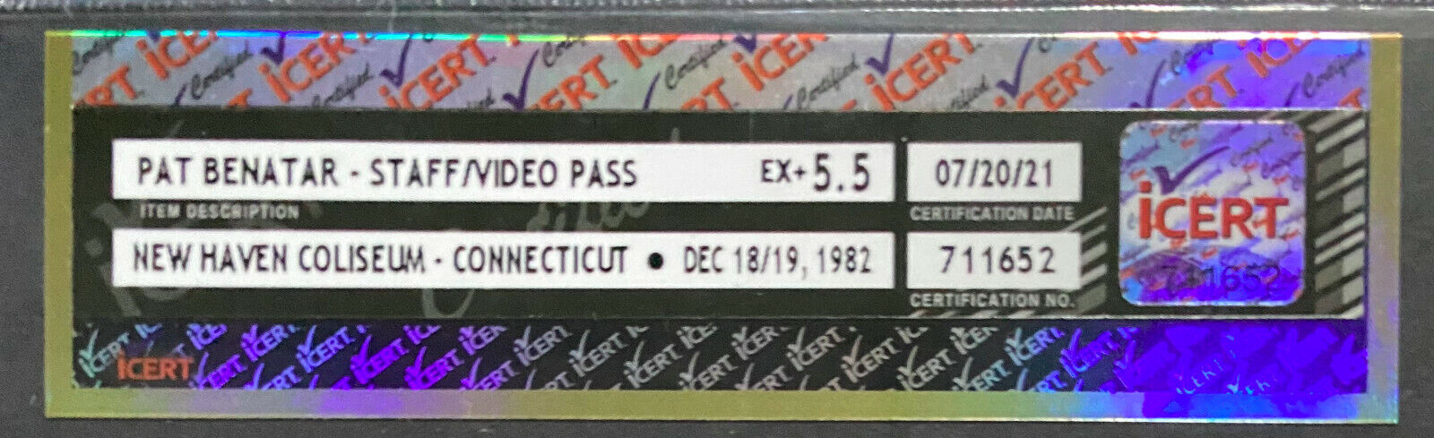 - Pat Benatar Staff/Video pass for New Haven Coliseum. Connecticut. 1982 tour