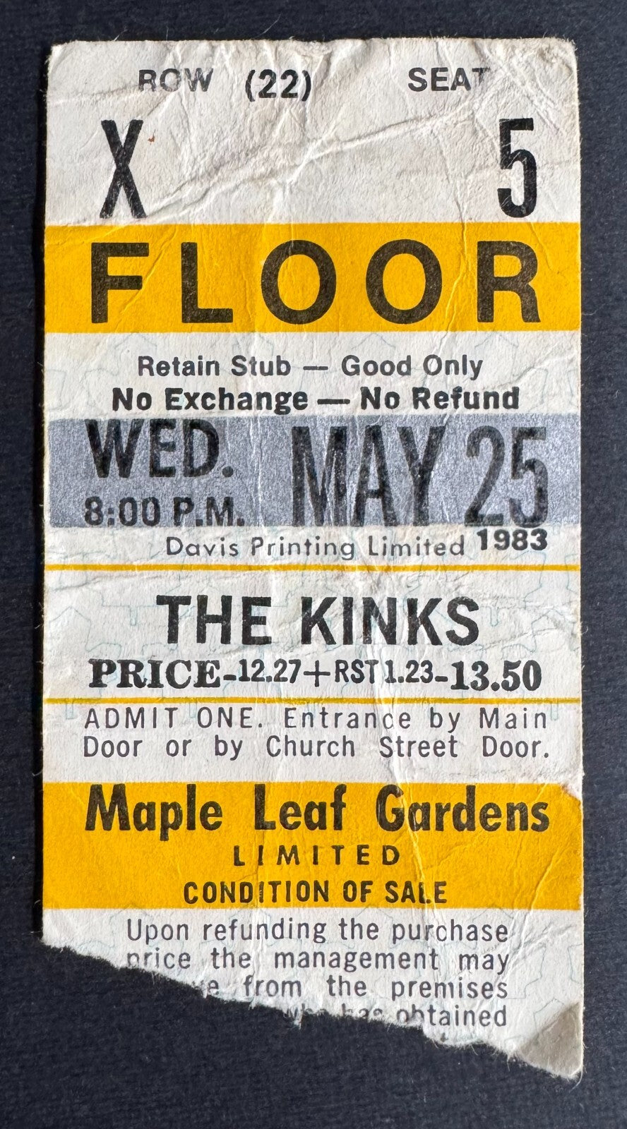 1983 The Kinks Concert Ticket Stub Maple Leaf Gardens English Rock Band Davies