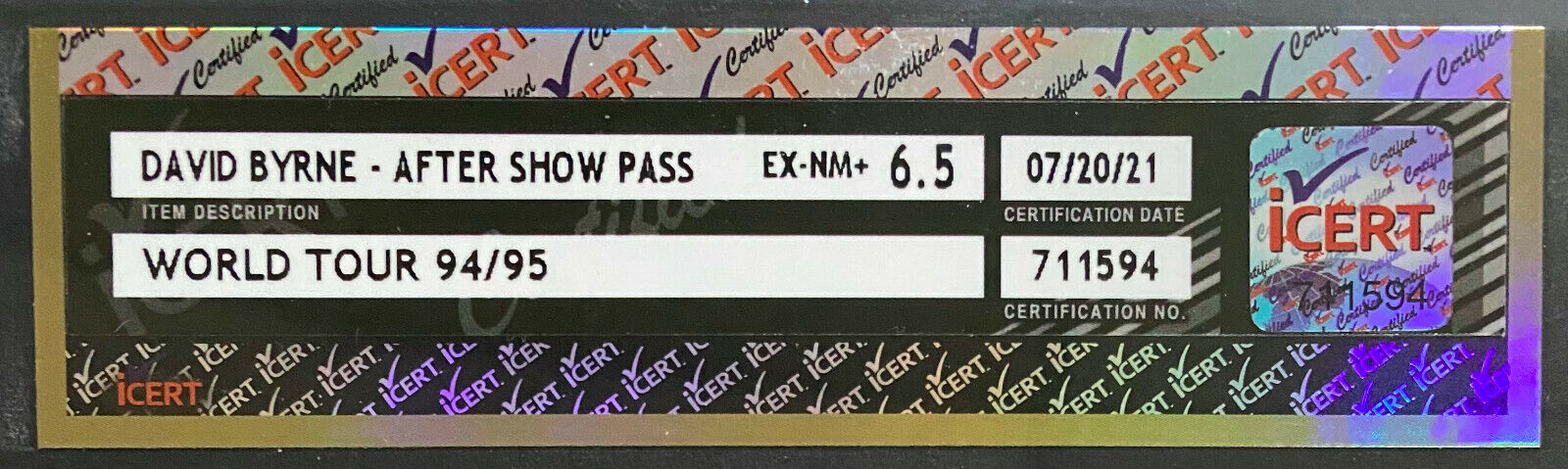- 1994-95 David Byrne World Tour Concert After Show Pass