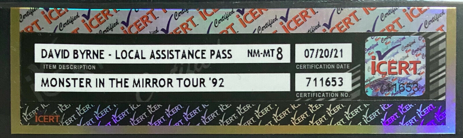 - David Byrne Local Assistance Pass for Monster In The Mirror 1992 Tour