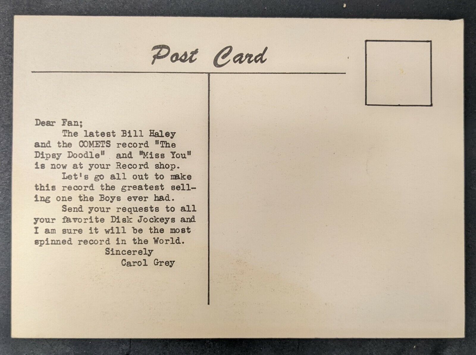- 1957 Bill Haley + His Comets Promotional Postcard Music Vintage
