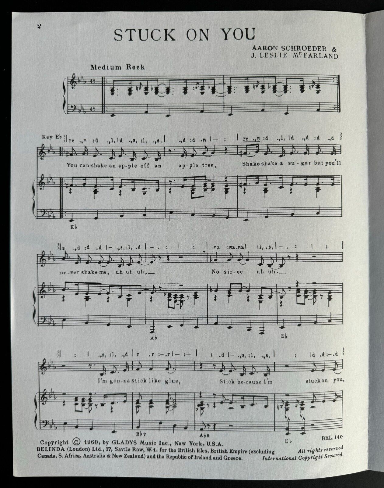 - 1960 Elvis Presley sheet music for the hit single "Stuck On You"