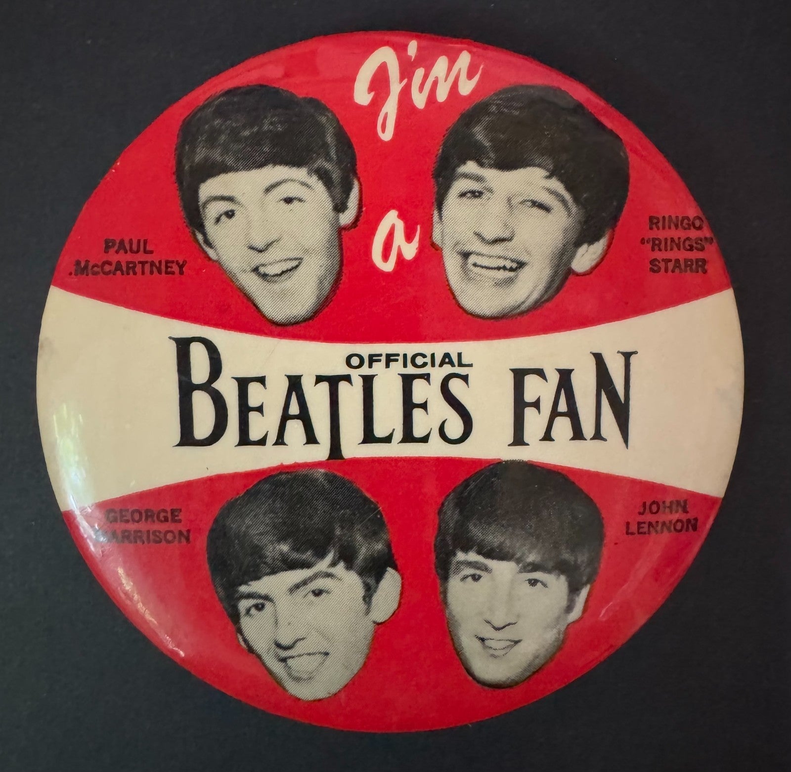 - I'm A Beatles Fan pinback. Printed on edge Nems Ent. Ltd 64 and Greenduck Co. Chicago made in USA