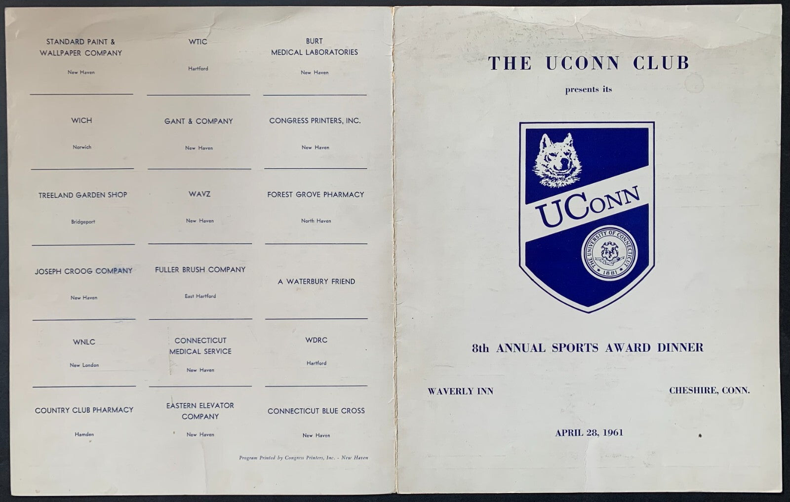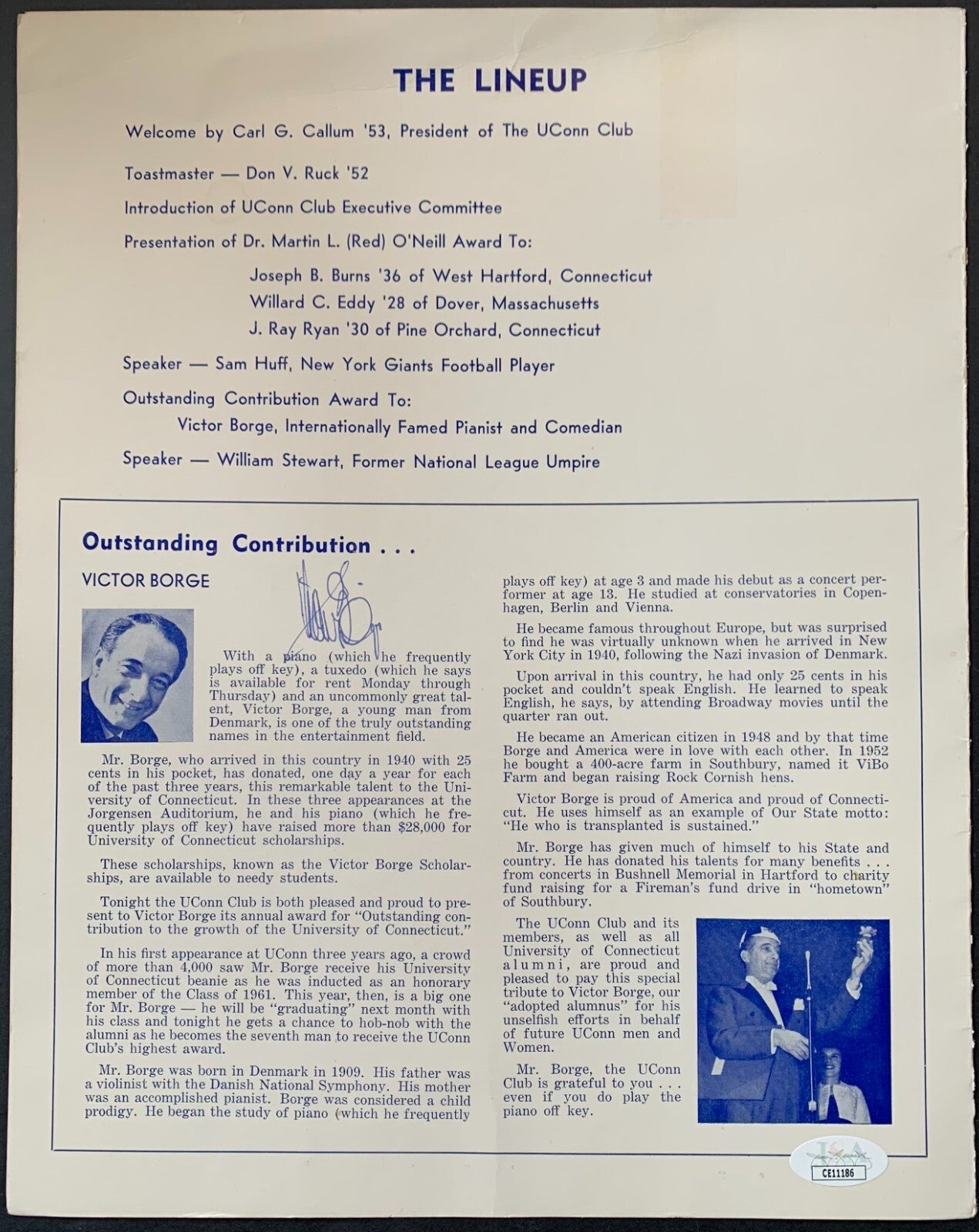 - University of Connecticut 1961 sports awards dinner program signed by famous pianist Victor Borge