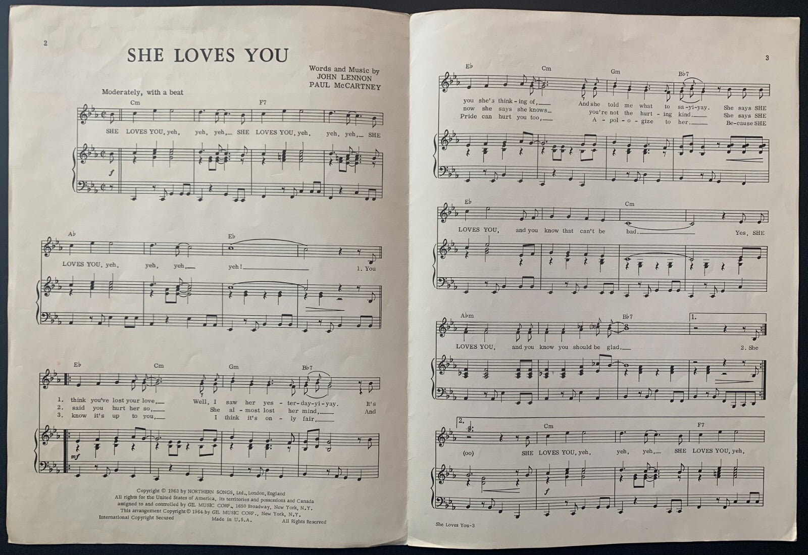 • 1963 Beatles Sheet Music She Loves You Gil Music Corp. Lennon McCartney Starr