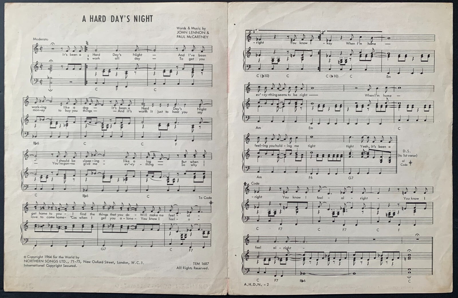 - 1964 Beatles Sheet Music A Hard Day's Night Northern Songs Ltd