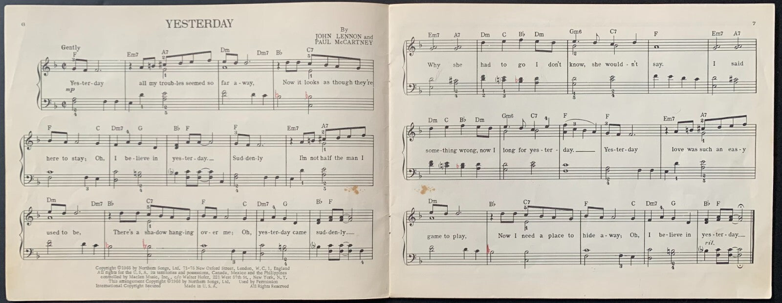 1965 Beatles Piano Songbook Photos Ed Sullivan Show Yesterday Nowhere Man