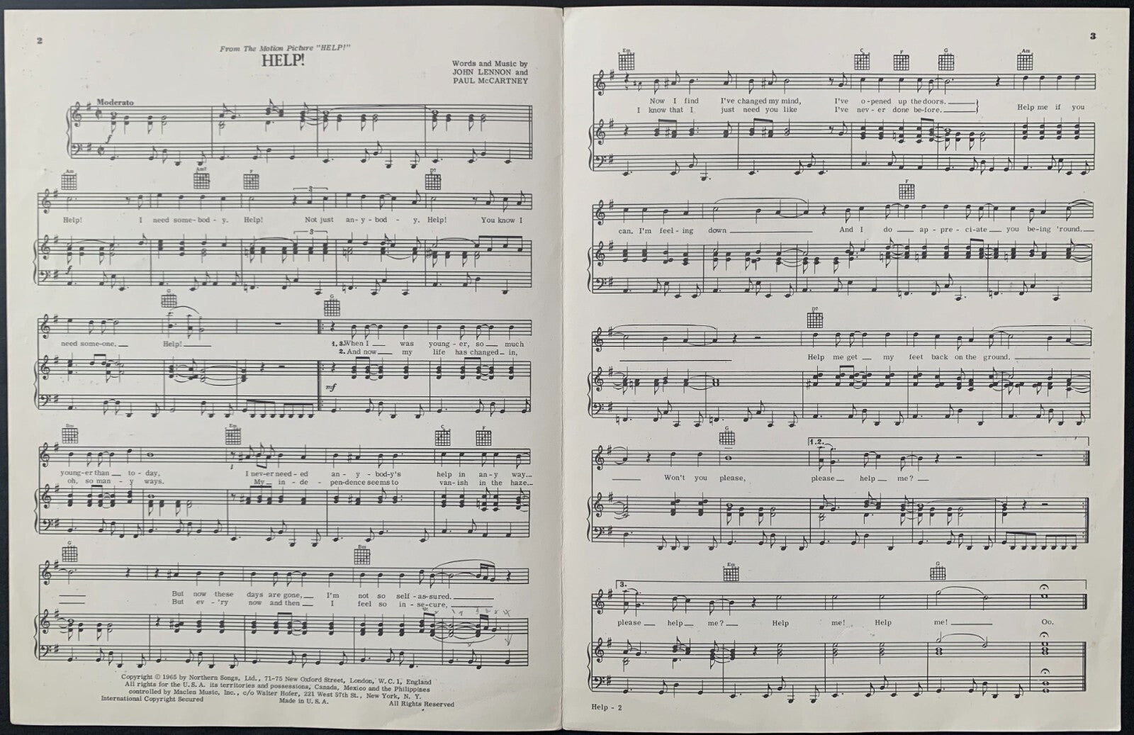 1965 Beatles Sheet Music Help Maclen Music Inc. Lennon McCartney Harrison Starr