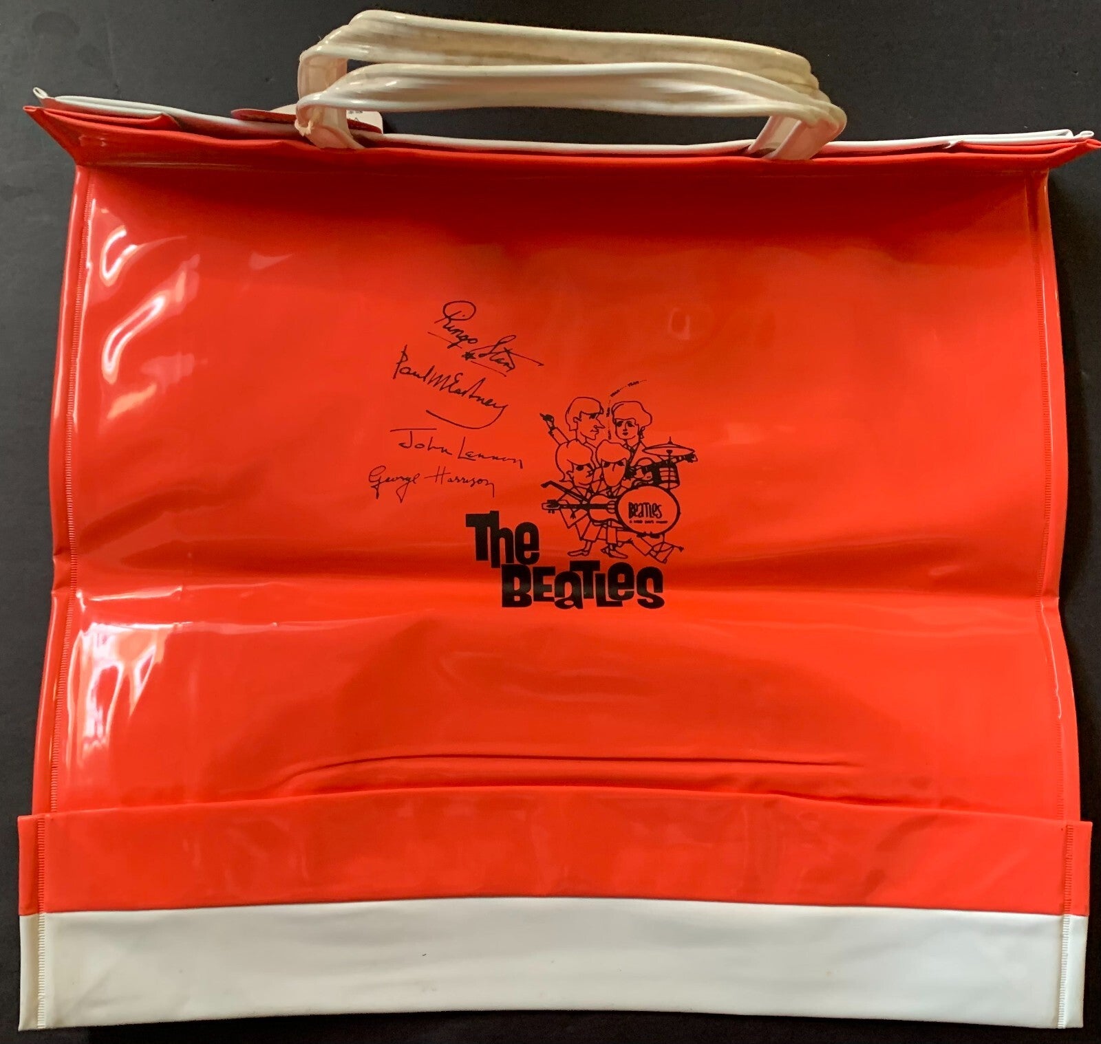 - Bag with handles and original manufacturers tag. Made of heavy plasic. Manufacturer Japanese company Wako issued in 1966 with photos of band members
