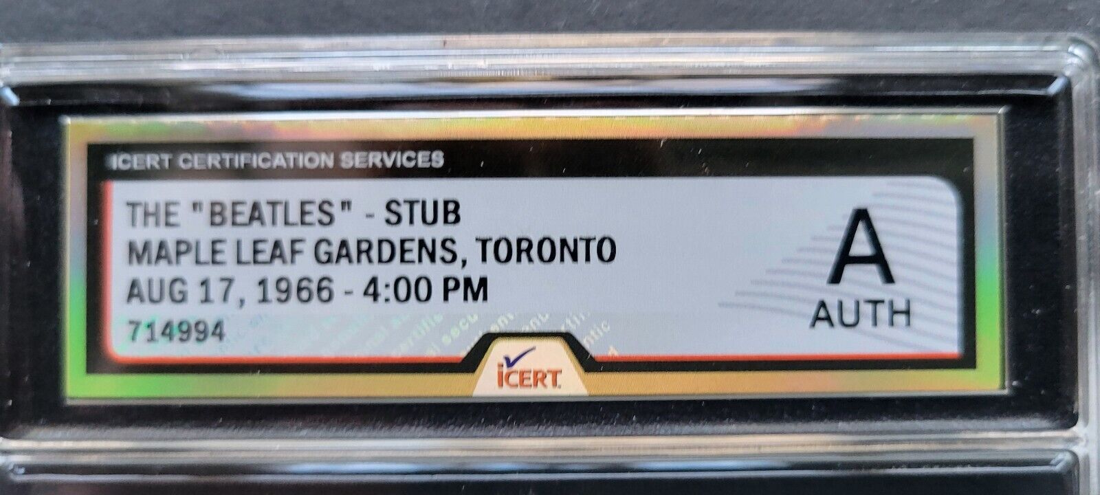 - August 17, 1966 Maple Leaf Gardens Beatles Ticket Stub iCert A Auth from their 4:00 concert