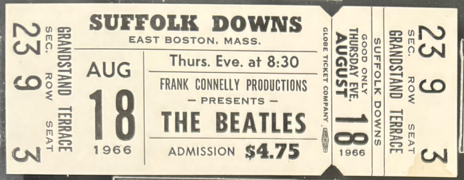- Ticket from August 18, 1966 concert at Suffolk Downs, East Boston