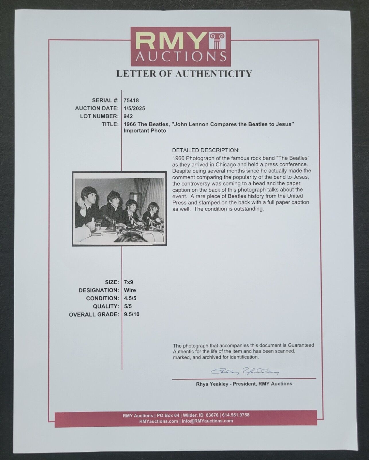 • 1966 The Beatles Type 1 Photo Press Conference Chicago RMY LOA