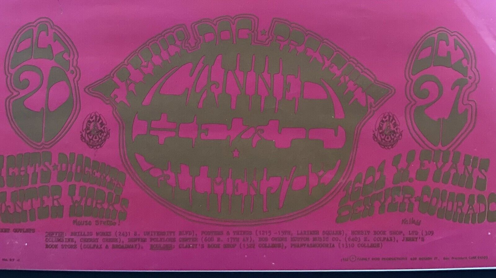 - 1967 Family Dog Bill Graham Concert Poster for Canned Heat + Allmen Joy, titled "Celestial Moonchild" poster code FDD-7