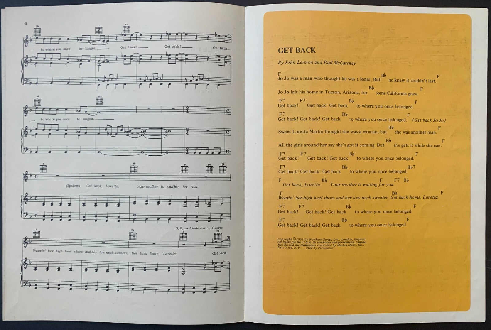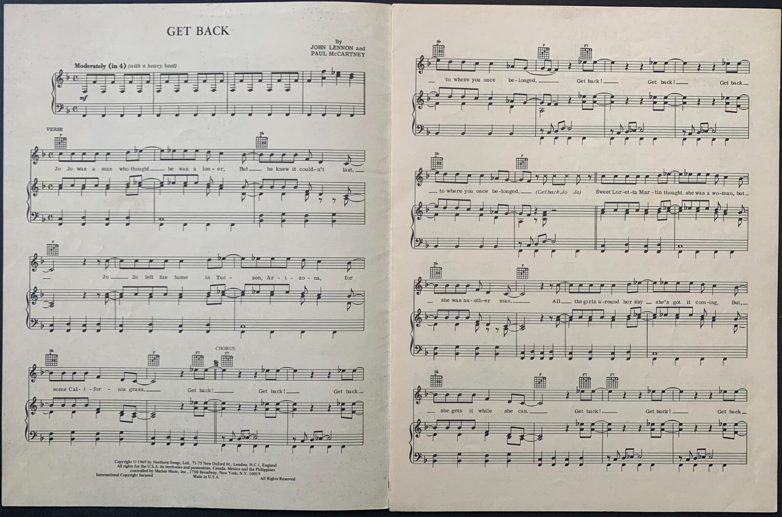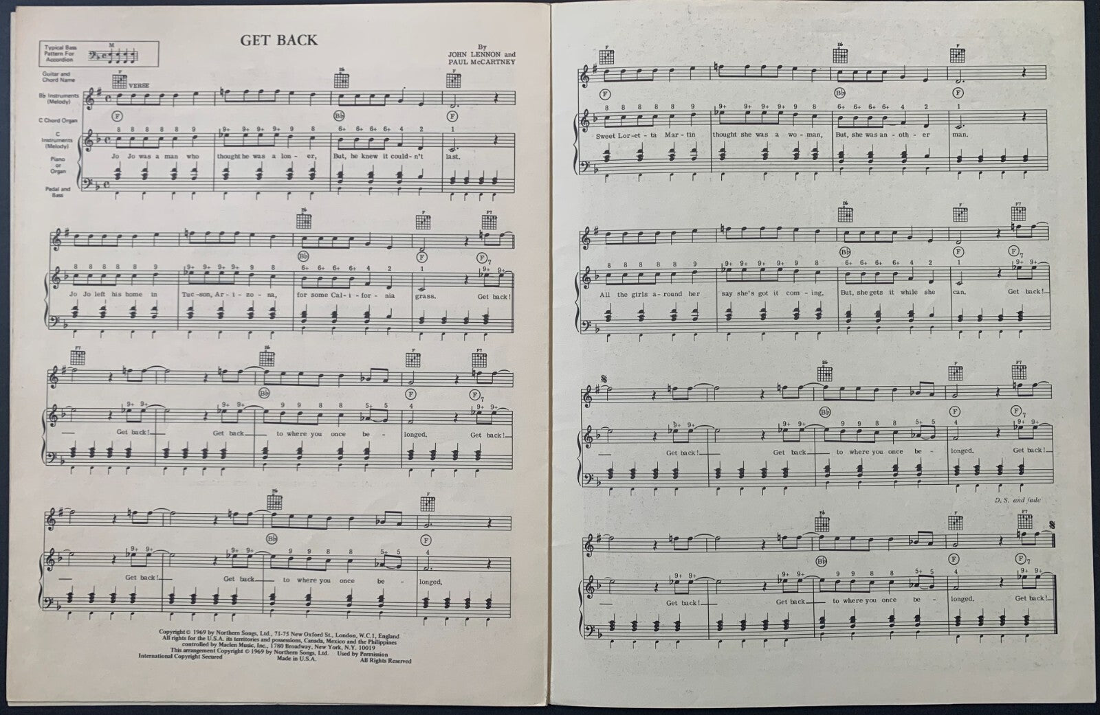 • 1969 Beatles Sheet Music Get Back Maclen Music Inc.