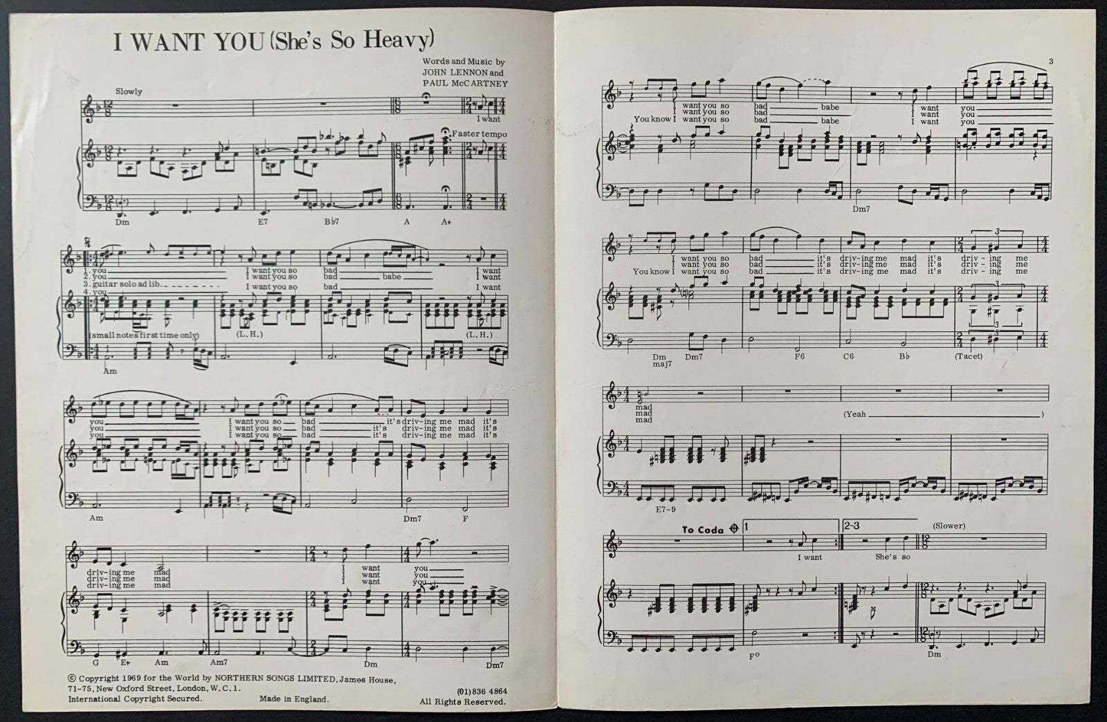 - 1969 Beatles Sheet Music I Want You (She's So Heavy) Northern Songs Ltd.