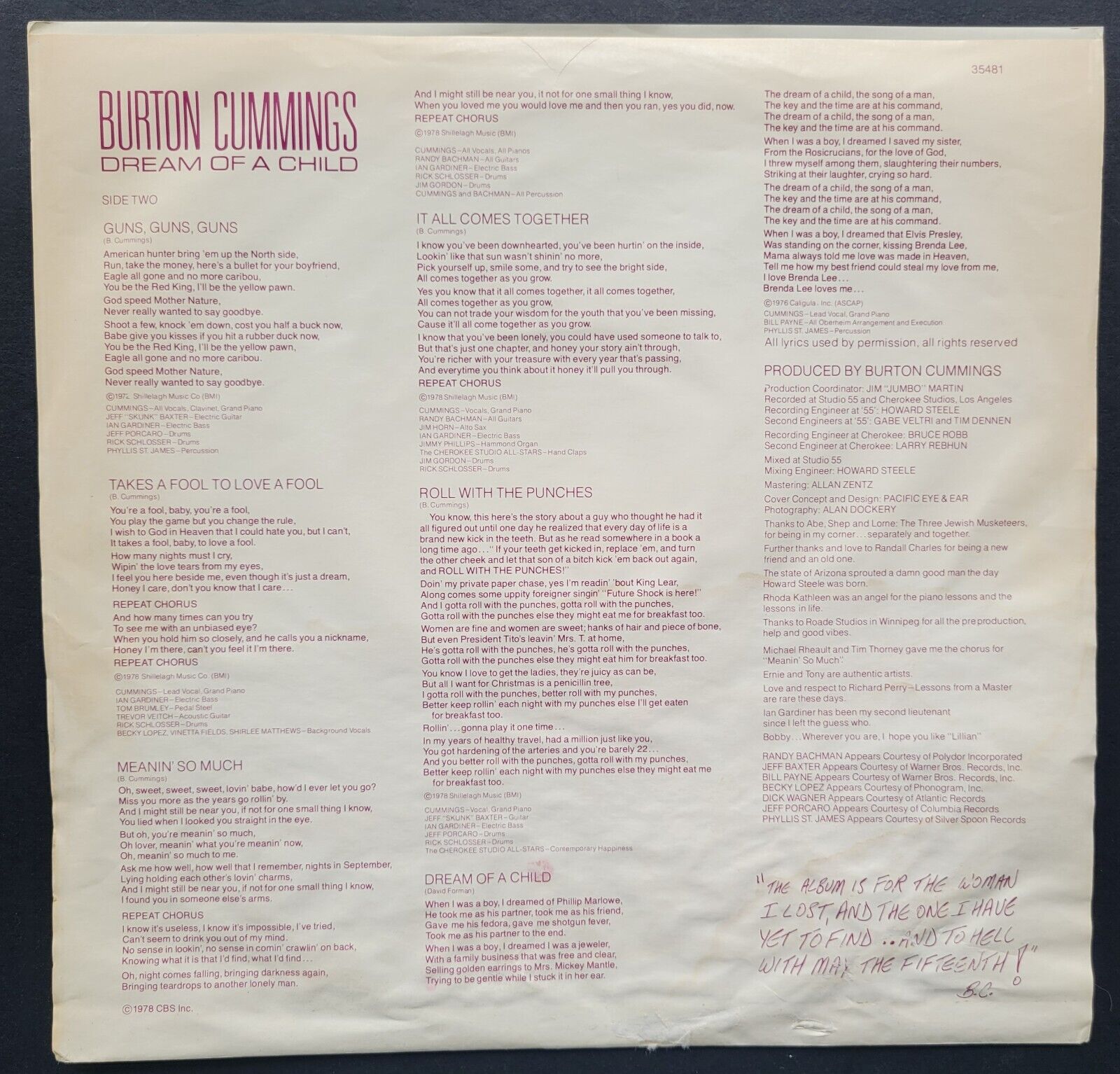 - 1978 Burton Cummings Signed Autographed LP Record JSA Dream Of A Child
