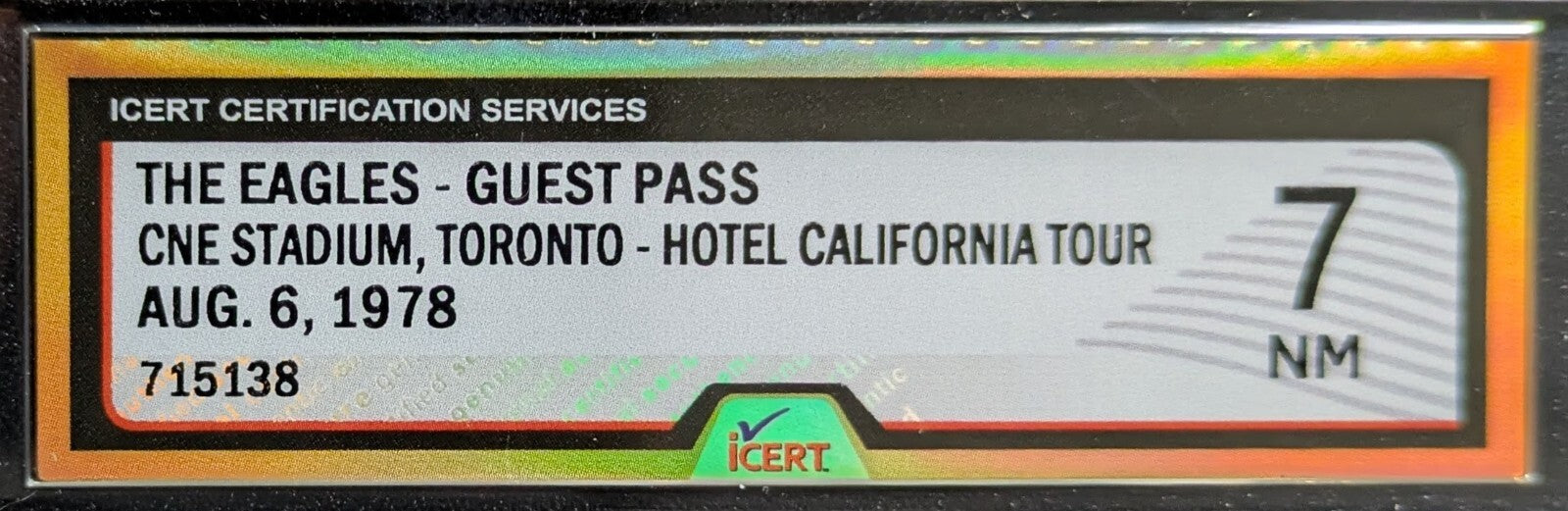 - 1978 The Eagles Guest Pass iCert Graded