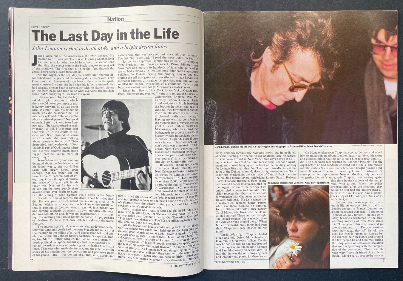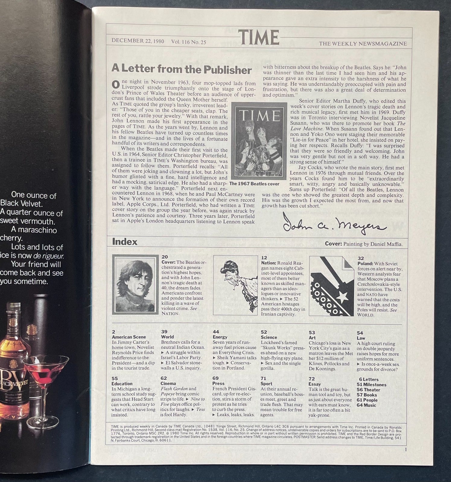 - 1980 Beatles John Lennon Time Magazine "When The Music Died" Music Rock