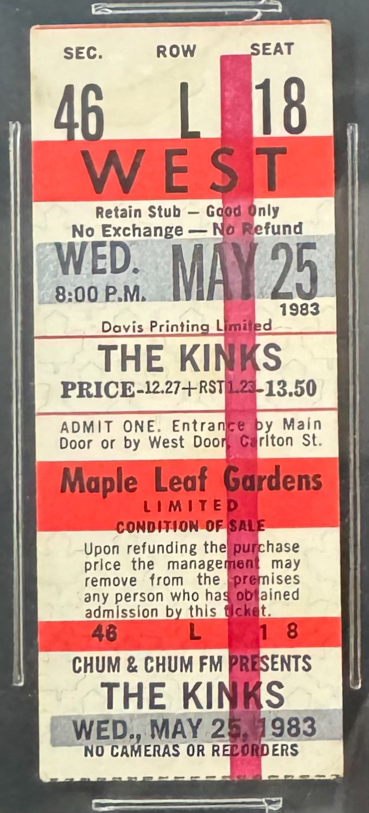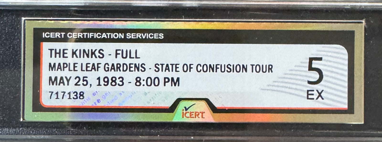 1983 The Kinks Maple Leaf Gardens State Of Confusion Tour Full Ticket iCert 5 EX
