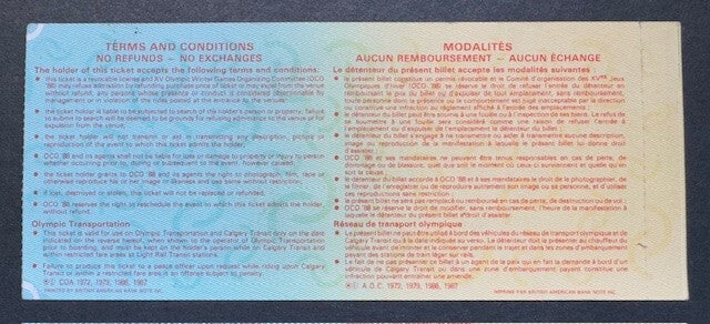 - Manufactured by Dual Control, with a Labatt's Calgary 1988 Official Sponsor crest embroidered to the left breast and "Bryan Adams" over the reverse with "XV Olympic Winter Games Calgary, February 20, 1988"