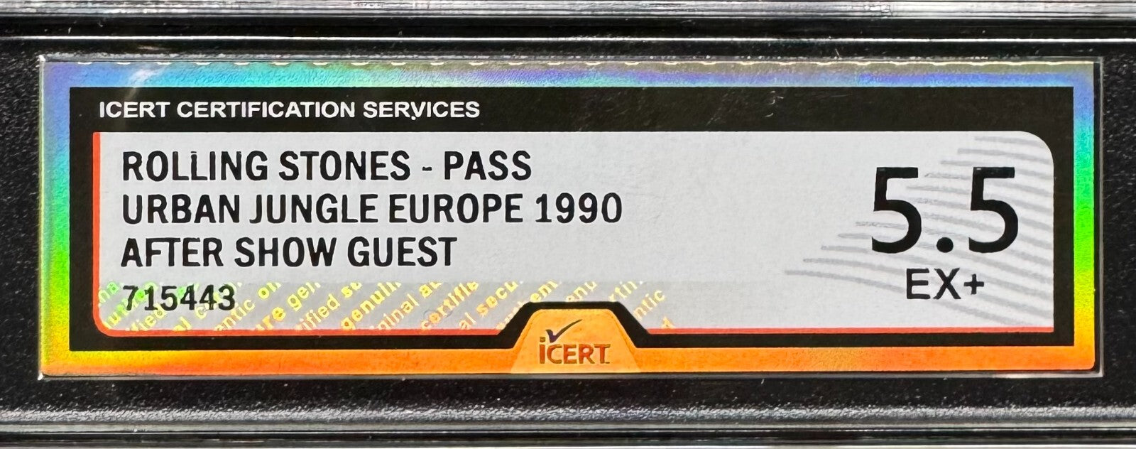 - 1990 Rolling Stones Urban Jungle After Show Guest Pass iCert 5.5 EX+