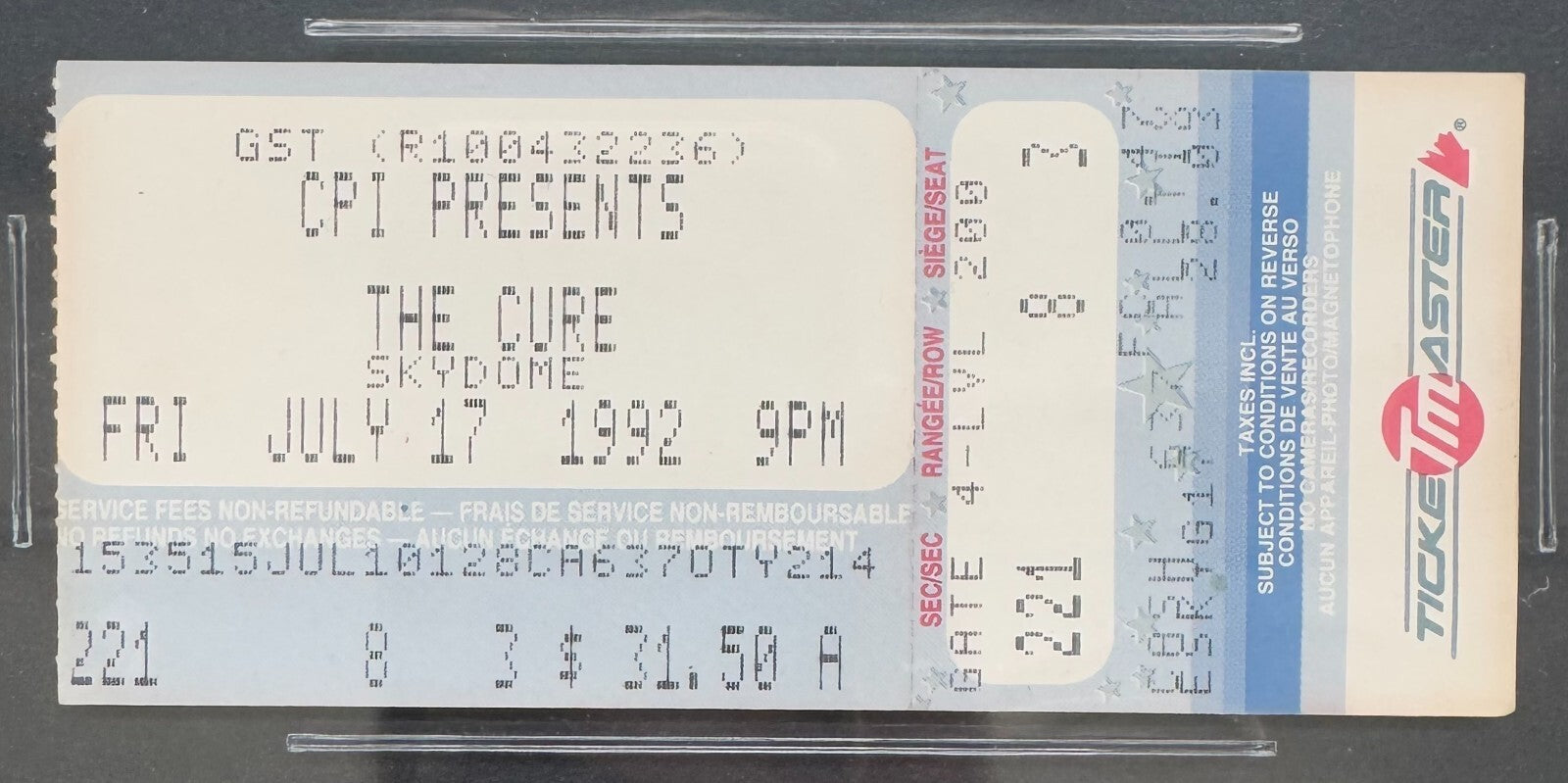 - Ticket dated Jul. 17, 1992 for The Cure's The Wish Tour at Skydome in Toronto
