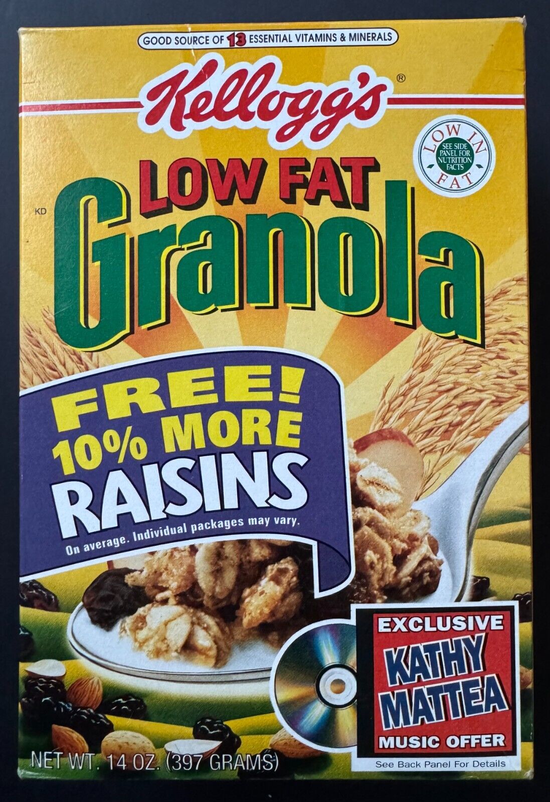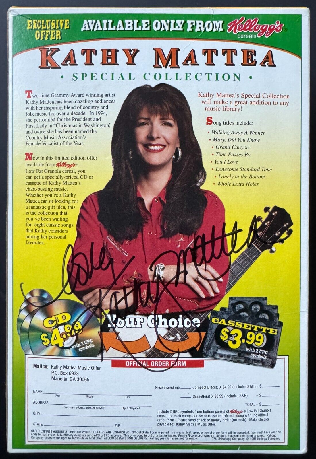- 1996 Kathy Mattea Signed Kellogg’s Low Fat Granola Empty Cereal Box