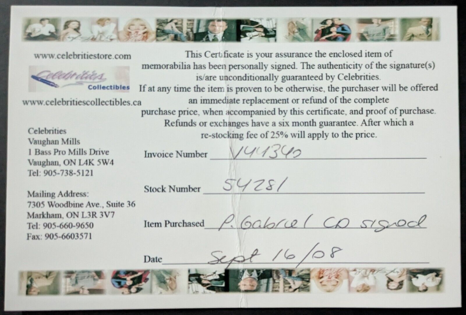 - Letter of Authenticity included from Celebritiestore
