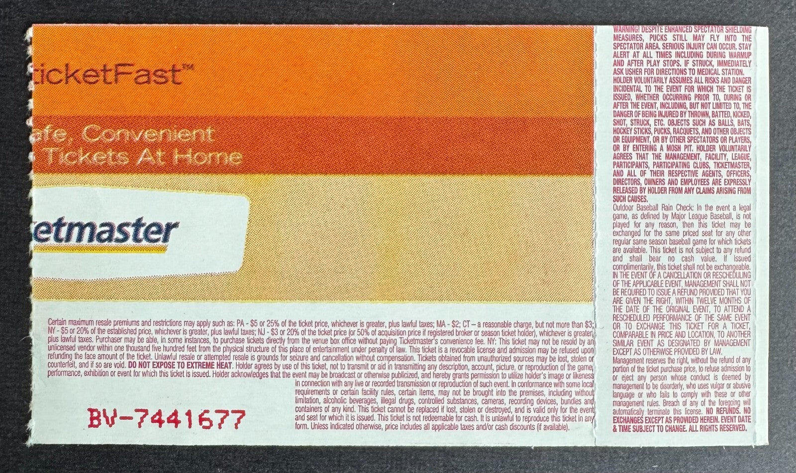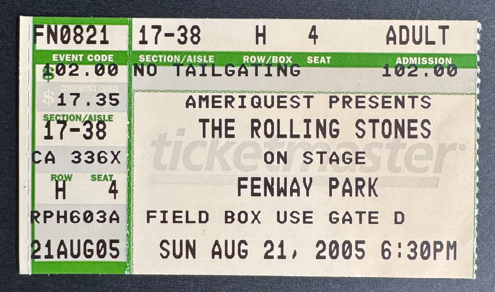 - Ticket for Aug. 21, 2005 concert at Boston's Fenway Park