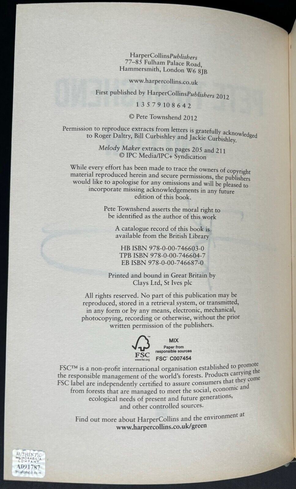 2012 Pete Townshend Signed Autographed Memoir Book "Who I Am" JSA Authenticated