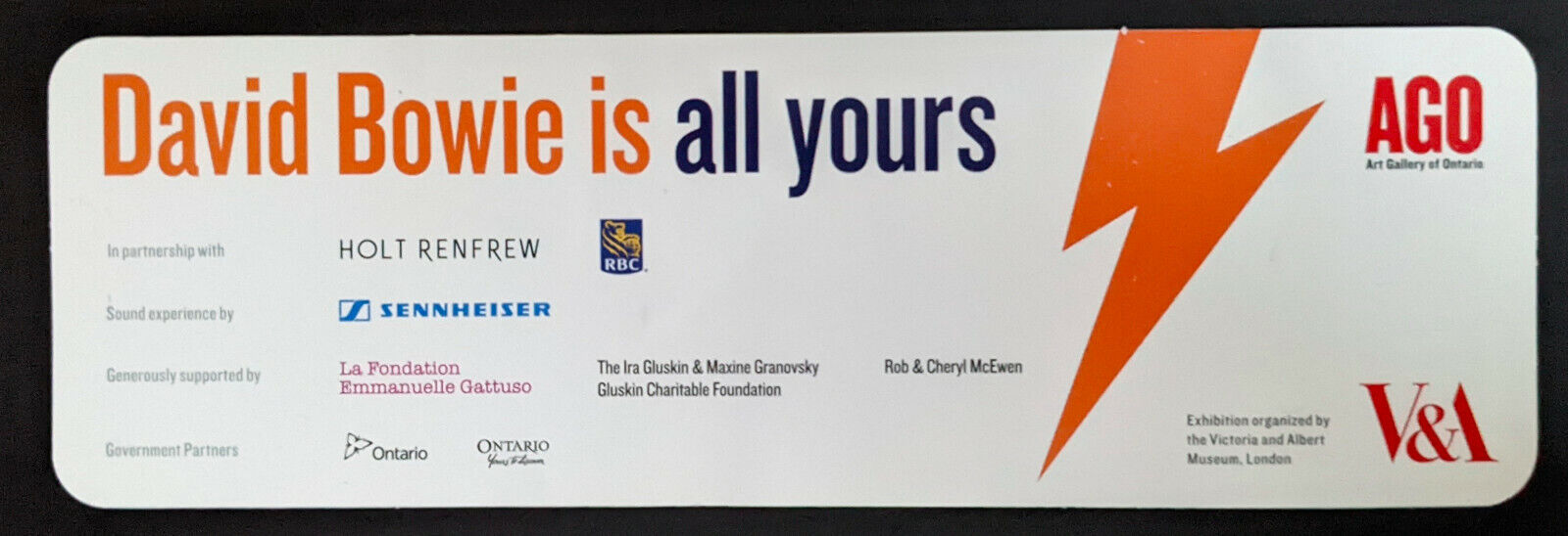- 2013 David Bowie Exhibit at Art Gallery of Ontario promotion plastic bookmark and guitar pick