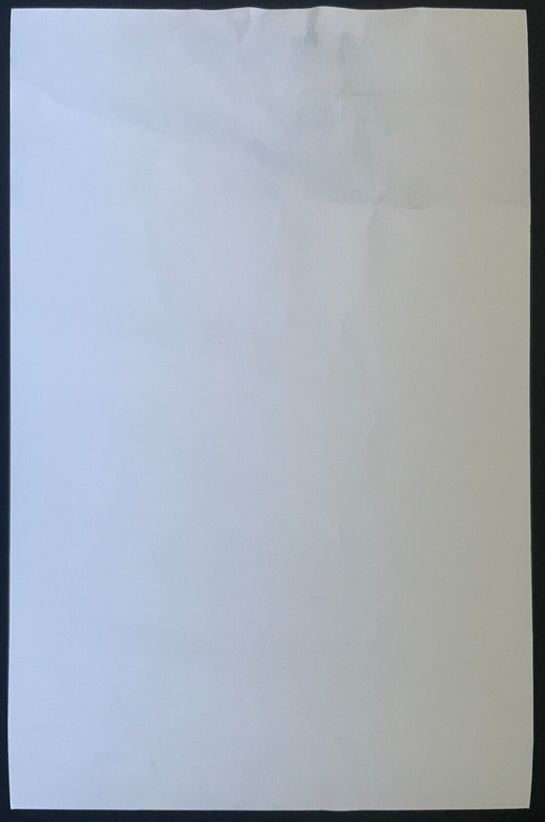 • Great condition; some light creasing from being rolled. Note that the vertical and horizontal lines in the middle of the folder are not creases but are printed on the design. Notable creasing along the top edge. No rips or tears