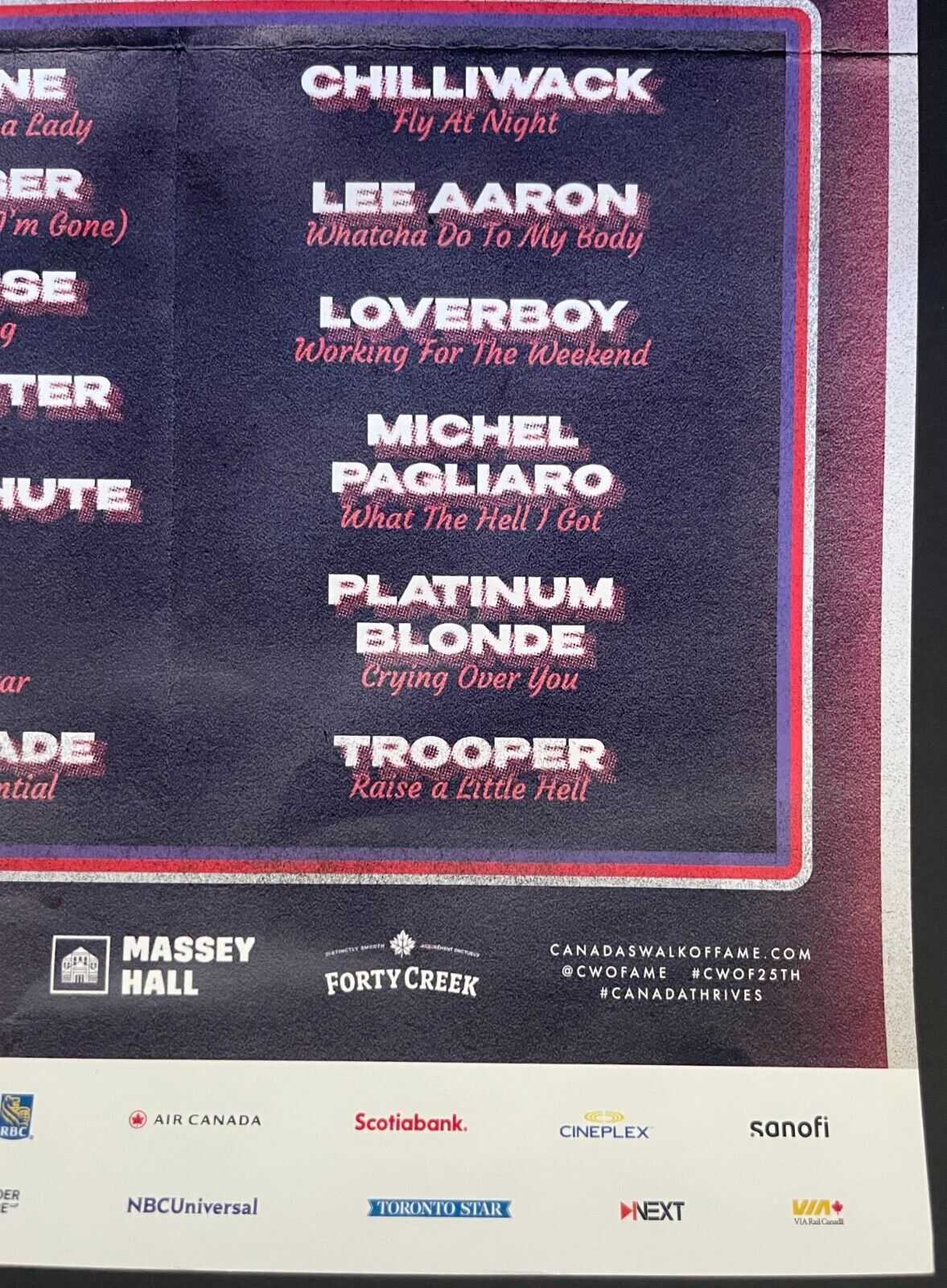 • 2023 Canada's Rock Of Fame Induction Concert Massey Hall Poster Banner Handbill