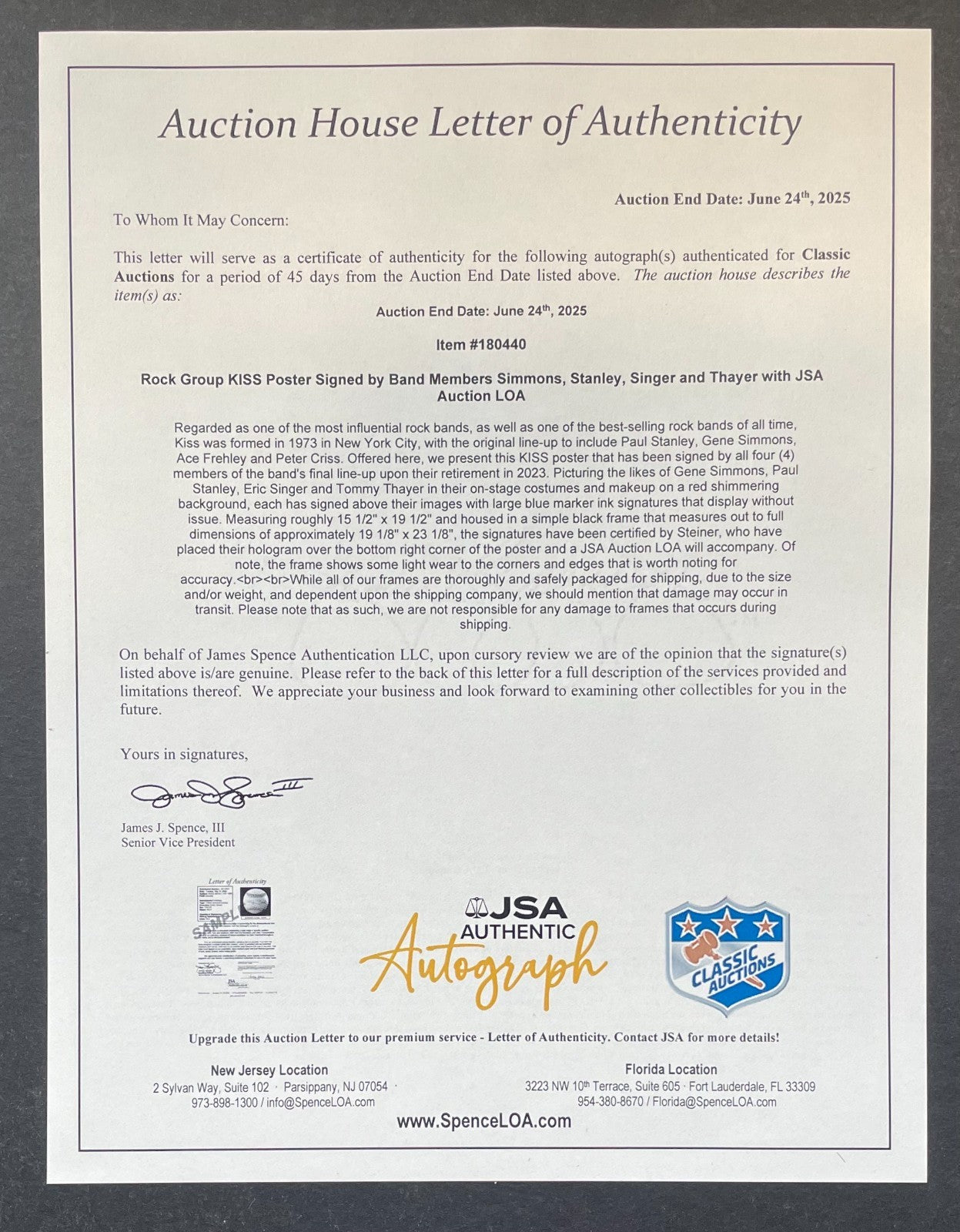 - The signatures have been certified by Steiner, who have placed their hologram over the bottom right corner of the poster, and a JSA Auction LOA