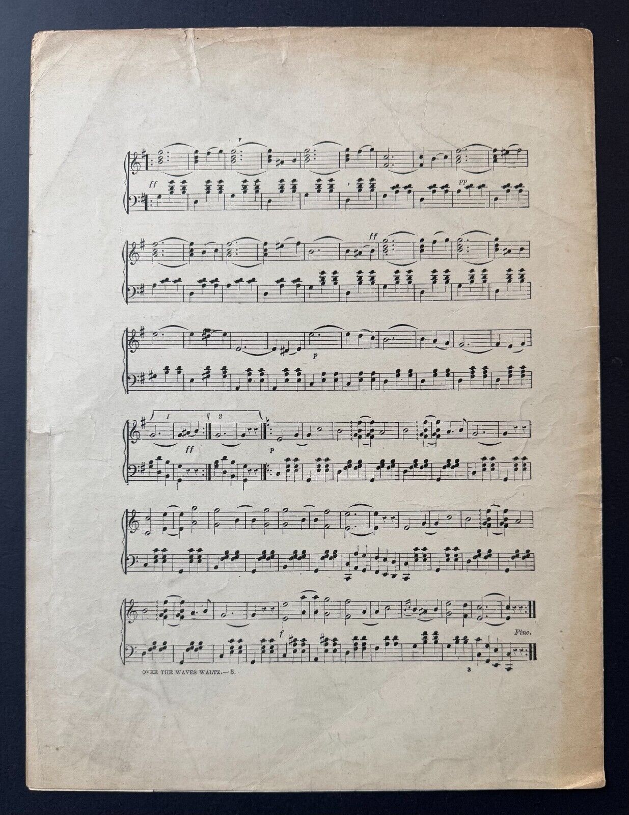 • Circa 1900 Over The Waves Waltz sheet music by Mexican composer Juventino Rosas