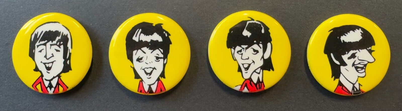 - Circa 1970’s Beatles Caricature Pinback Buttons Set Of 4