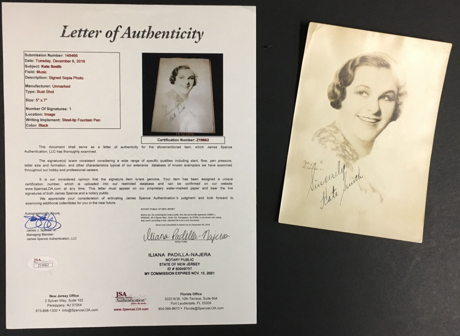 - Kate Smith autographed Sepia photo