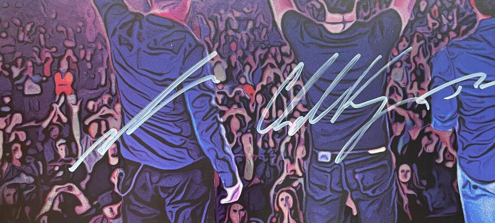 • Signed by all four members of the band - Daniel Adair, Chad Kroeger, Ryan Peake and Mike Kroeger from left to right