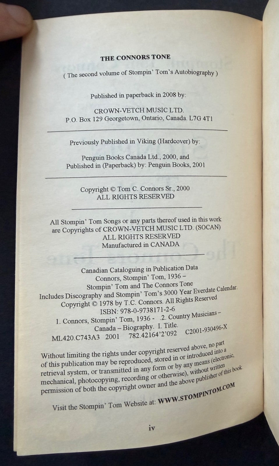 - Stompin' Tom Connors signed autographed autobiography 'A Journey Worth Taking' book