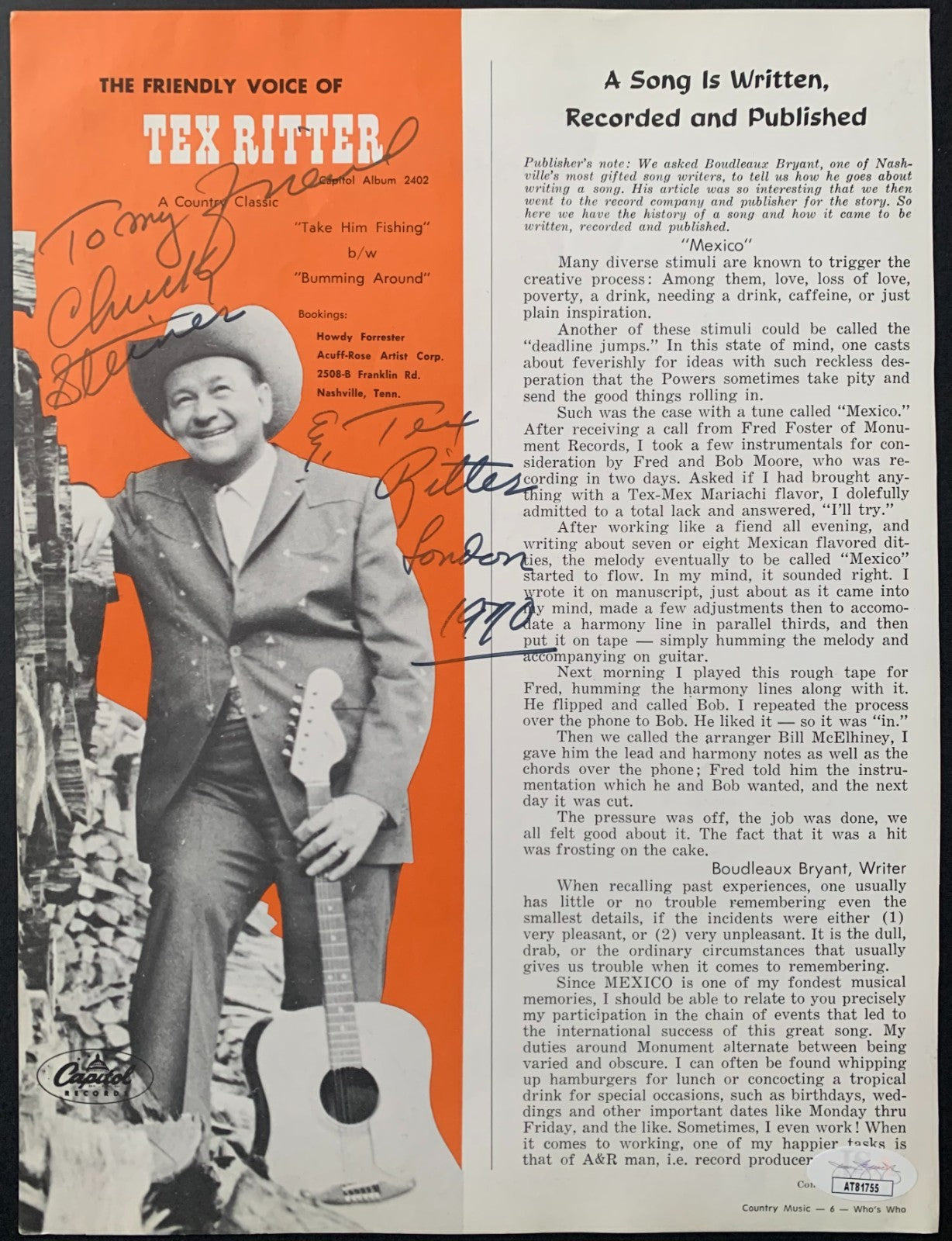- Tex Ritter Signed Autographed Capital Records Promotional Ad JSA