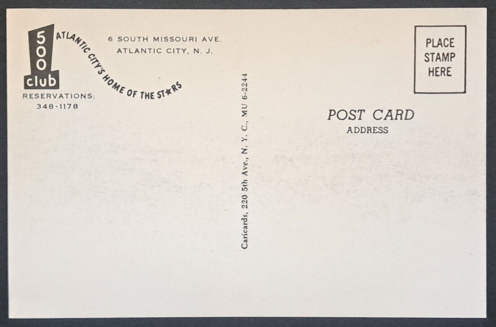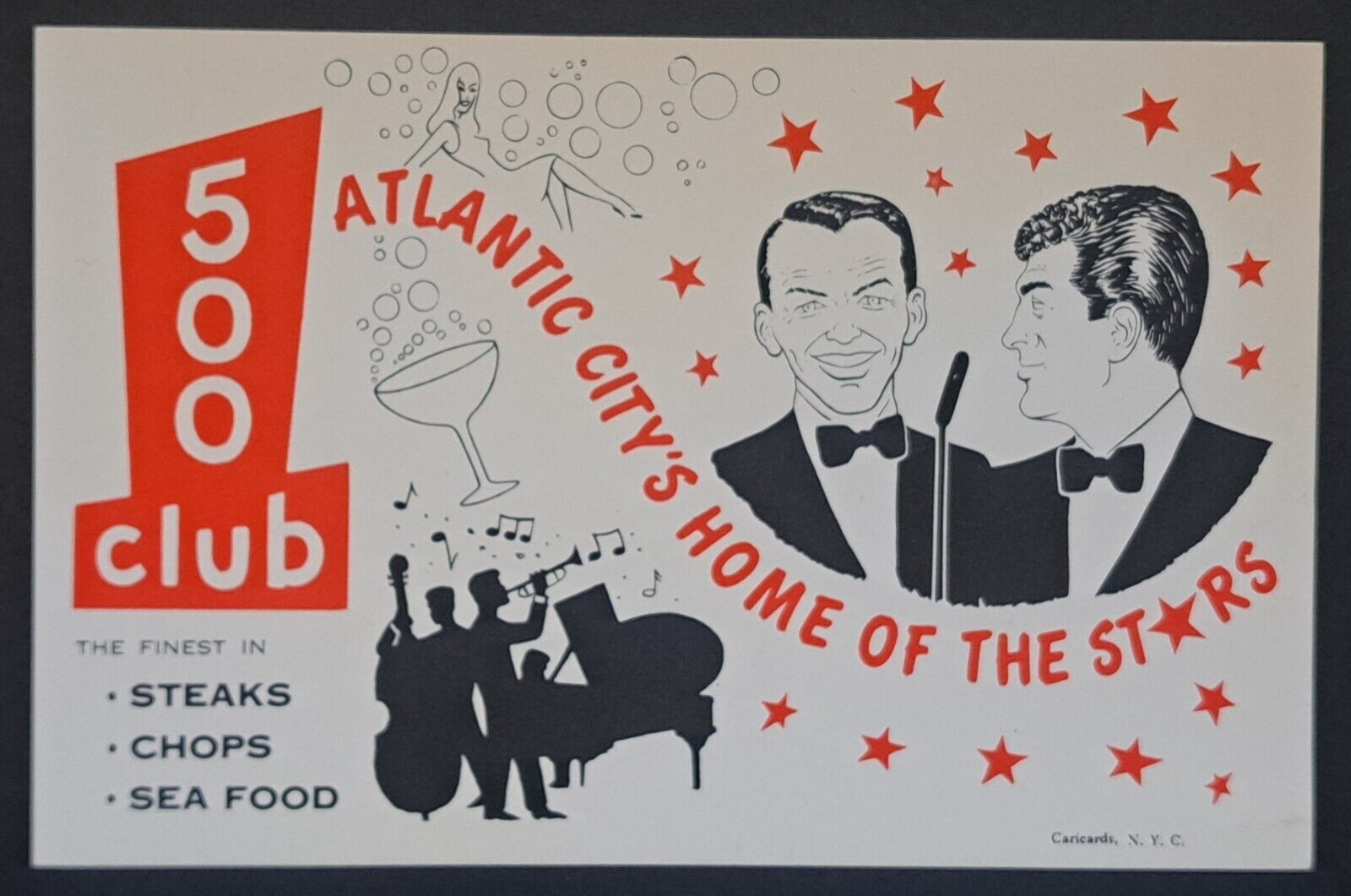 - 1962 Vintage Rat Pack 500 Club Atlantic City Postcard