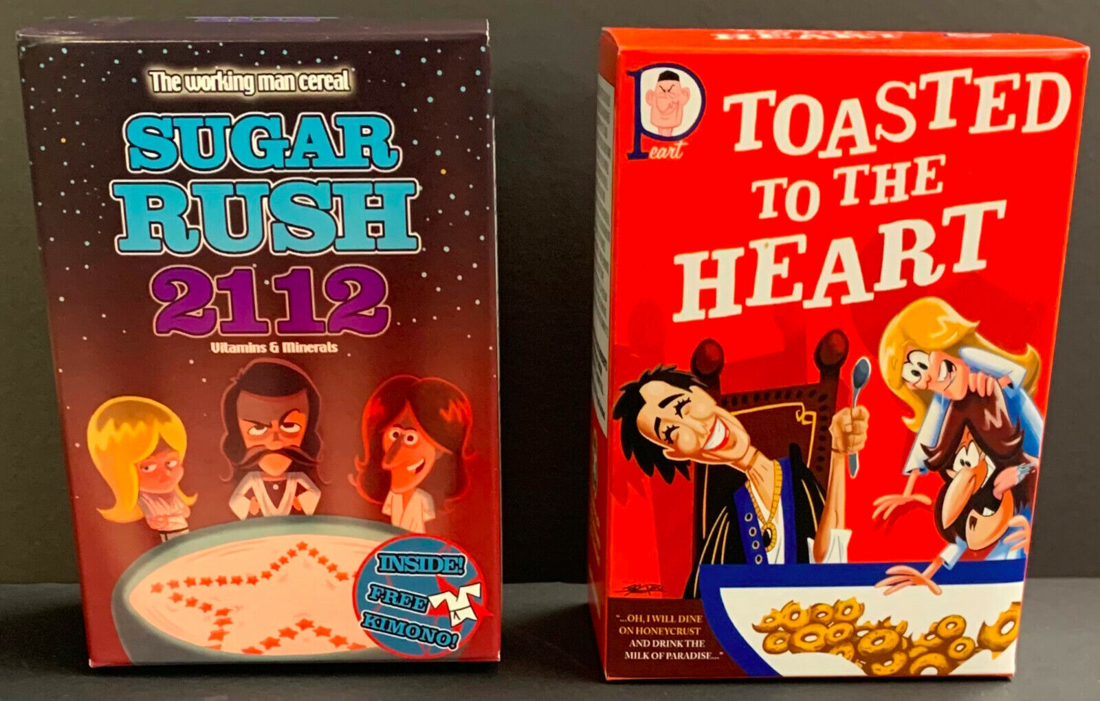 - Set of two RUSH mini promo cereal boxes circa 2000 - Sugar Rush 2112 and Toasted to the Heart