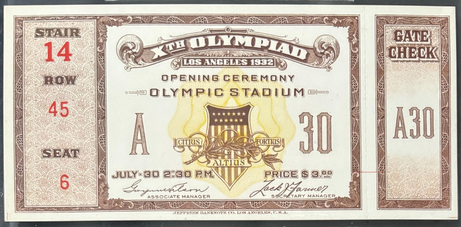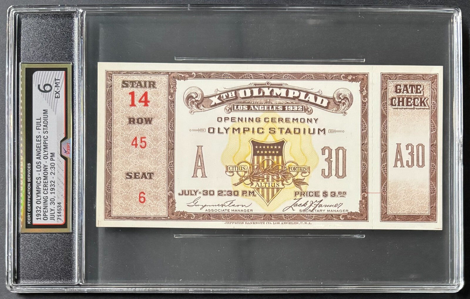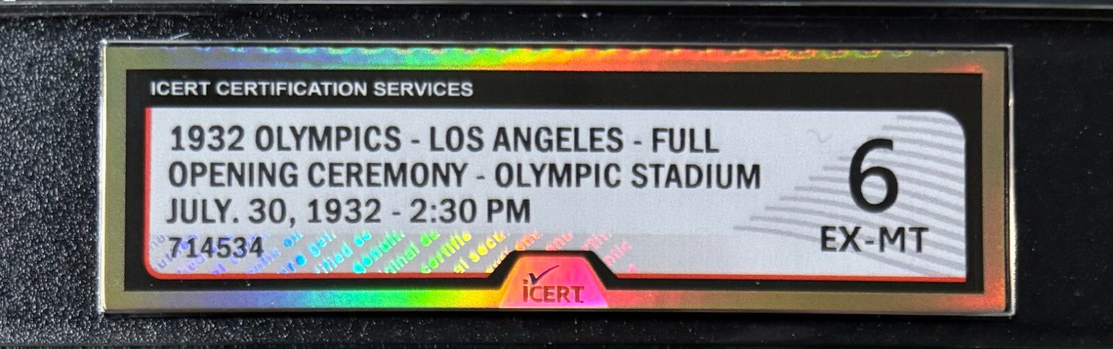 - 1932 Olympic Stadium Opening Ceremony Full Ticket iCert 6 EX-MT