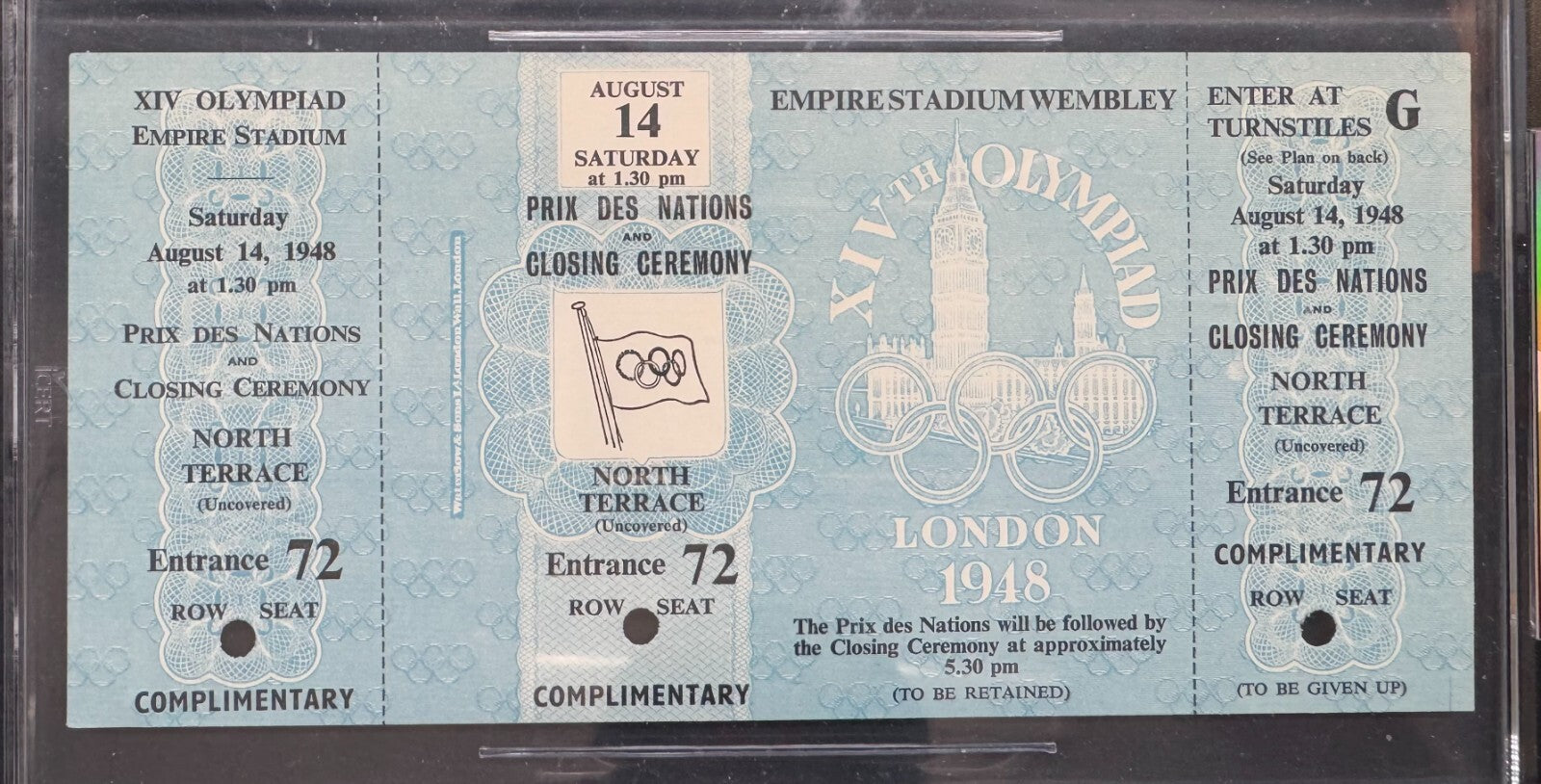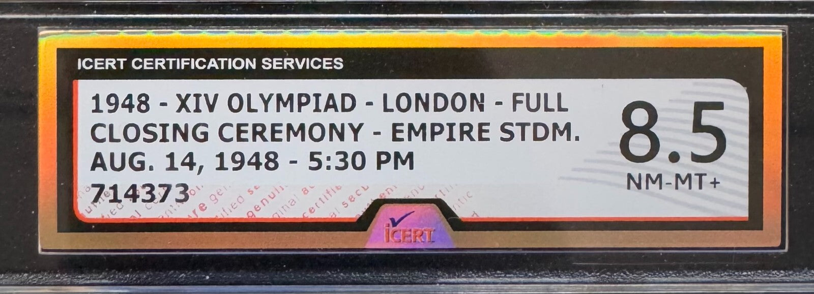 - 1948 Olympic Closing Ceremony Full Ticket iCert Graded