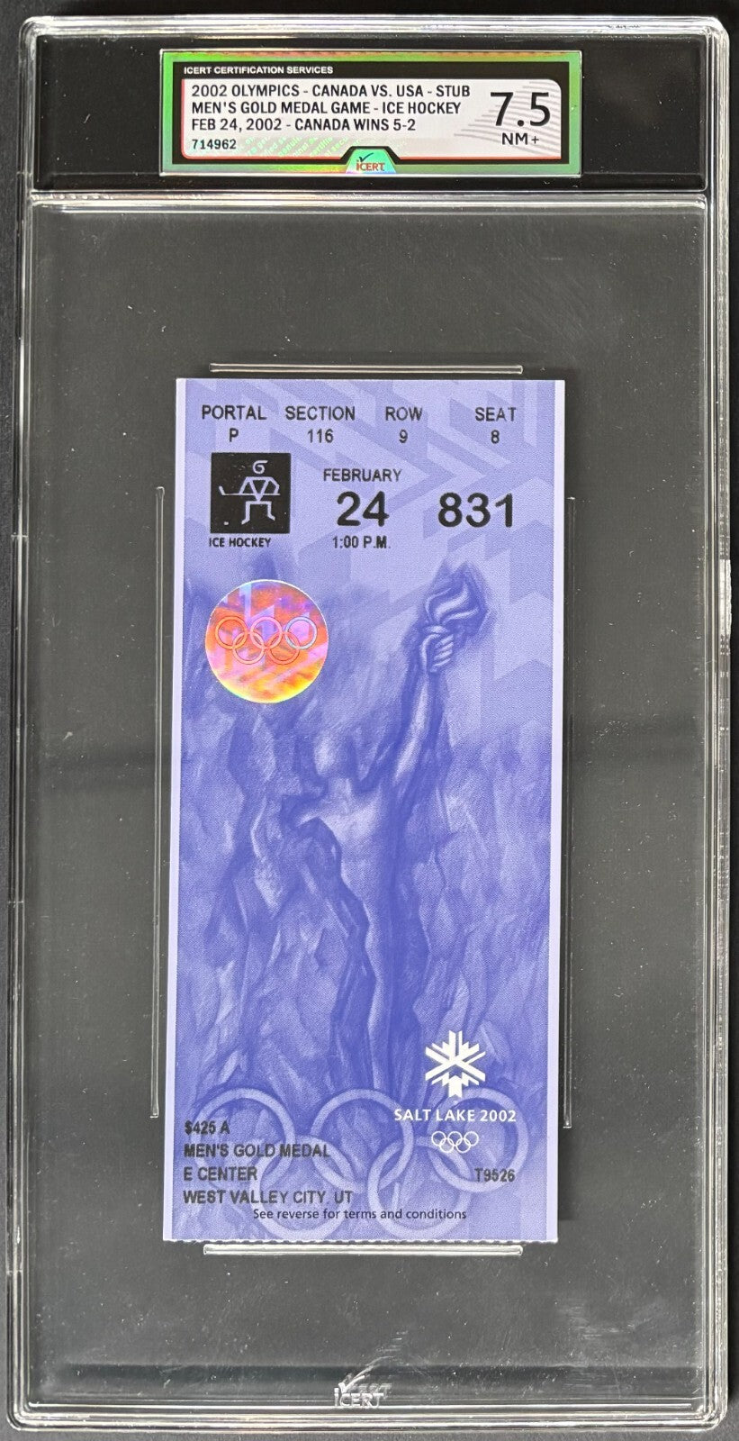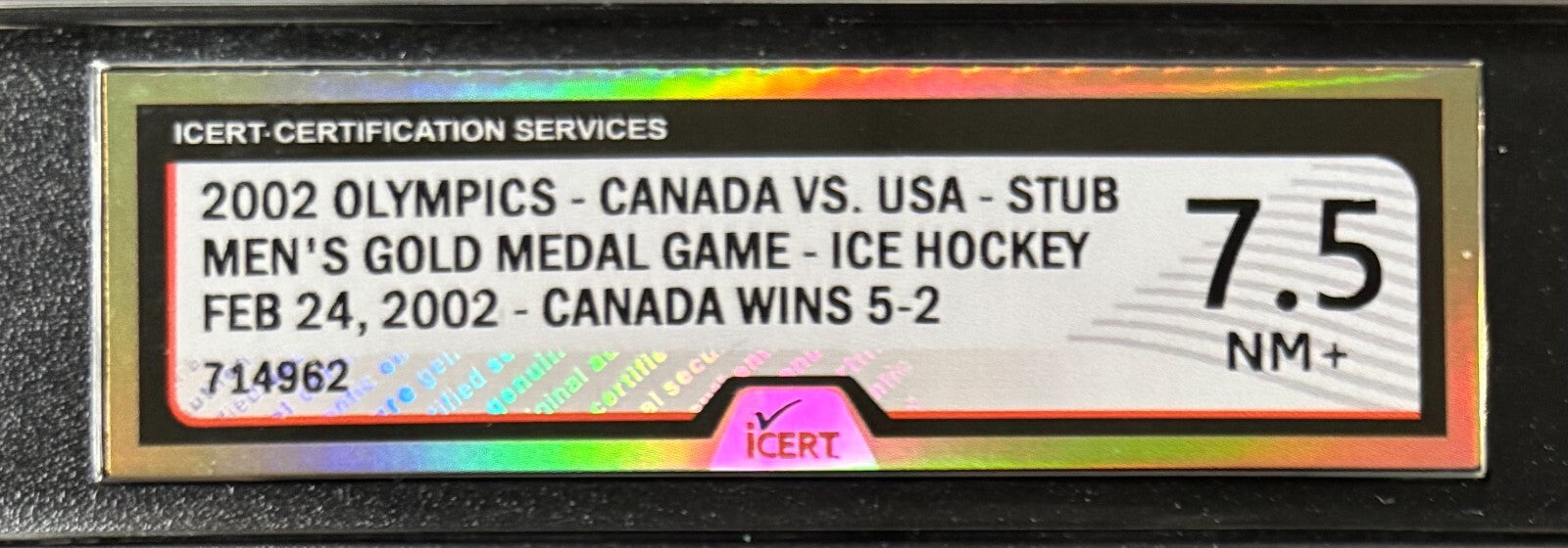 - 2002 Winter Olympic Ice Hockey Gold Medal Game Ticket Stub iCert 7.5 NM+