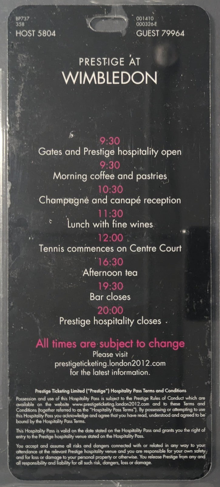 - 2012 Summer Olympics Men's Singles Tennis Gold Medal Full Ticket iCert Wimbledon