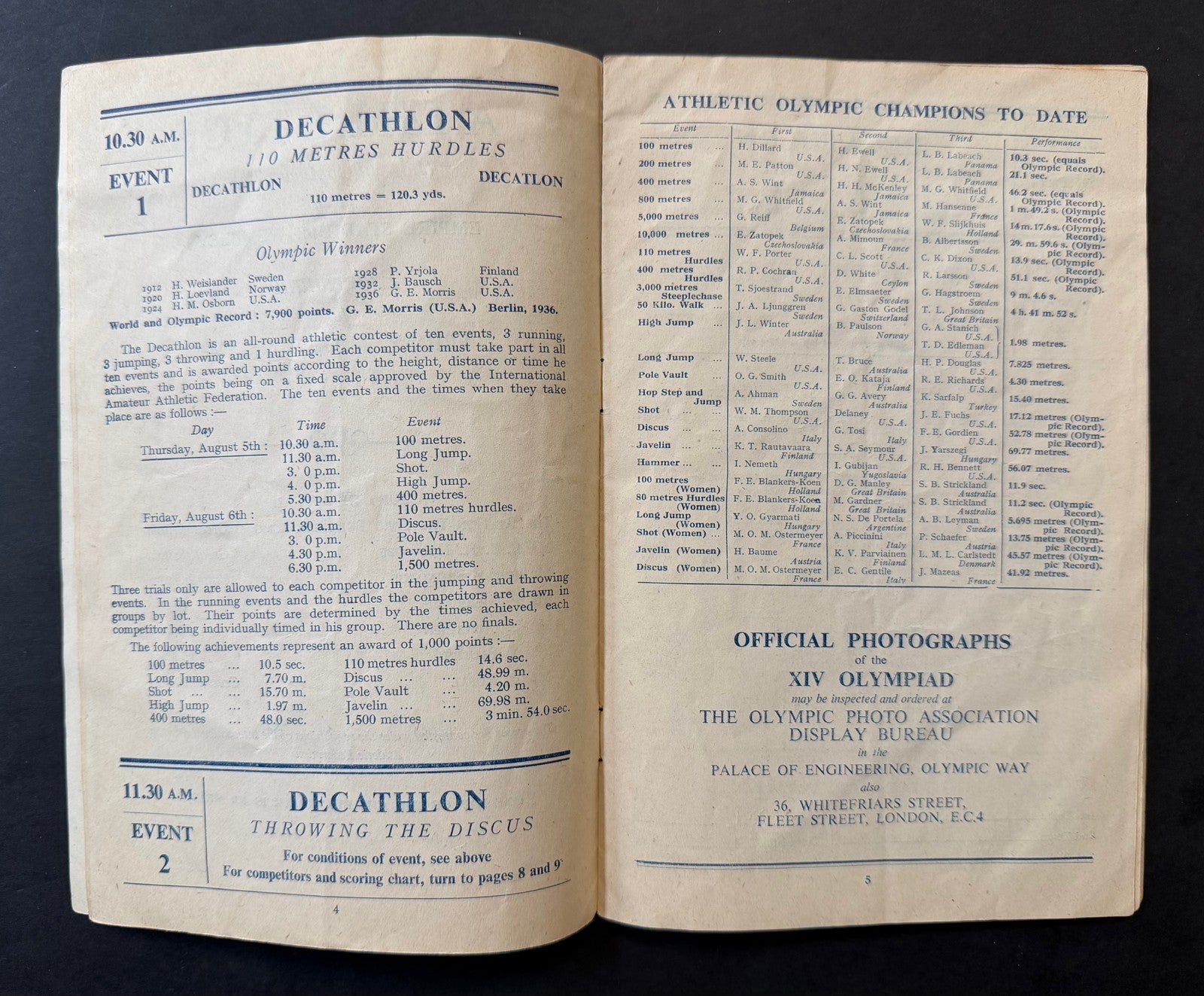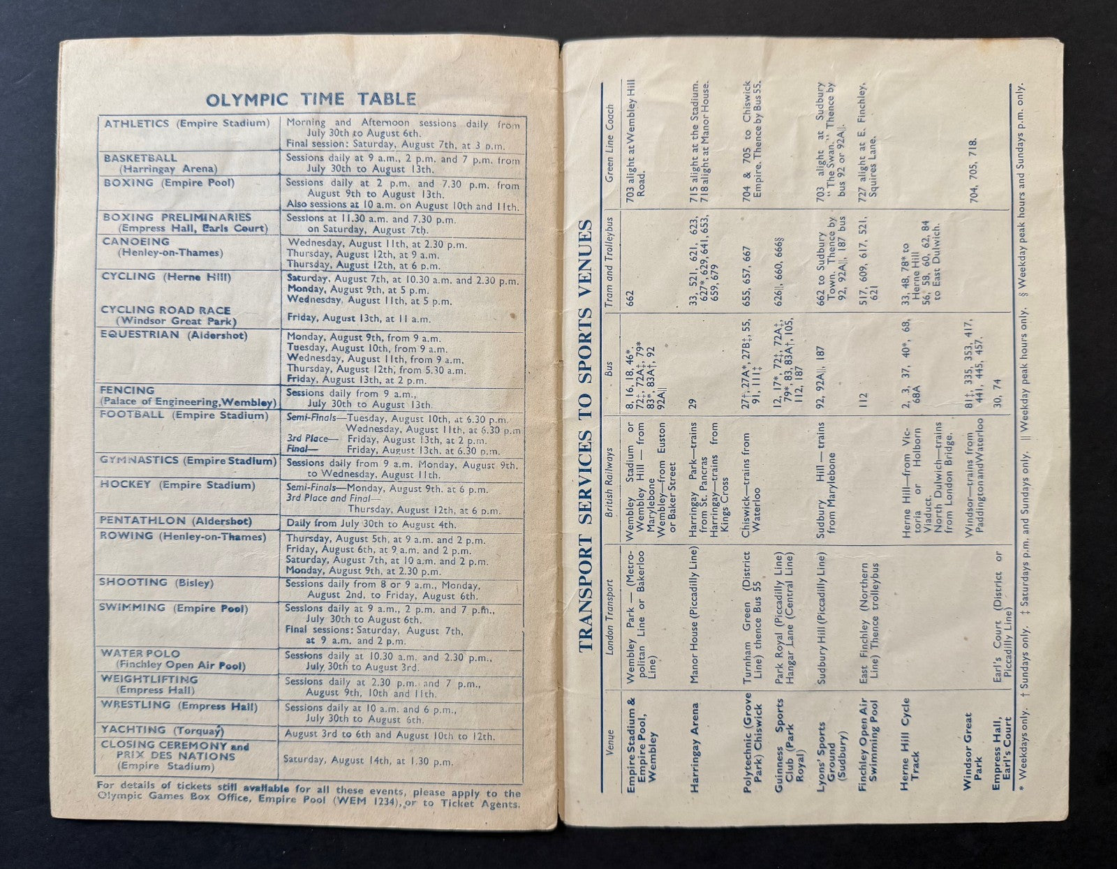 - Aug. 6th 1948 Summer Olympics at Wembley Stadium in London England program + ticket